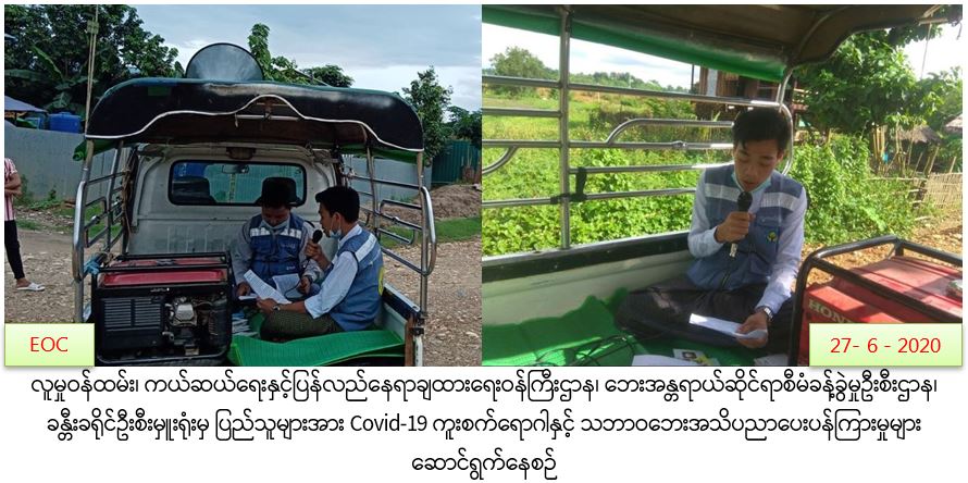 လူမှုဝန်ထမ်း၊ ကယ်ဆယ်ရေးနှင့်ပြန်လည်နေရာချထားရေးဝန်ကြီးဌာန၊ ဘေးအန္တရာယ်ဆိုင်ရာစီမံခန့်ခွဲမှုဦးစီးဌာန၊ ခန္တီးခရိုင်ဦးစီးမှူးရုံးမှ (၂၇-၆-၂၀၂၀) ရက်နေ့တွင် ခန္တီးမြို့နယ်၊ သာယာကုန်းေကျးရွာအတွင်း COVID-19 ကူးစက်ရောဂါအသိပညာပေးခြင်းနှင့် မိုးကြိုးဘေး၊ ရေဘေးအသိပညာပေးဆောင်ဩခြင်းများဆောင်ရွက်ခဲ့ပြီး လက်ကမ်းစာစောင်များဖြန့်ဝေခဲ့ကြောင်း သတင်းရရှိပါသည်။