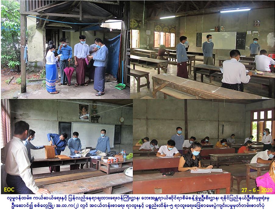 လူမှုဝန်ထမ်း၊ ကယ်ဆယ်ရေးနှင့် ပြန်လည်နေရာချထားရေး ဝန်ကြီးဌာန၊ ဘေးအန္တရာယ်ဆိုင်ရာစီမံခန့်ခွဲမှုဦးစီးဌာန၊ ရခိုင်ပြည်နယ် ဦးစီးမှူးရုံးမှ ဦးဆောင်၍ (၂၇-၆-၂၀၂၀)ရက်နေ့တွင် အငယ်တန်းစာရေးရာထူးနှင့် ပစ္စည်းထိန်း-၅ ရာထူးများအတွက် ရေးဖြေ စာမေးပွဲအား စစ်တွေမြို့၊ အ.ထ.က(၂)၌ ကျင်းပပြုလုပ်ခဲ့ပါသည်။ အငယ်တန်းစာရေးရာထူးအတွက် မြန်မာစာဘာသာရပ်အား (၀၉:၀၀)နာရီအချိန်မှ (၁၁:၀၀)နာရီအချိန်အထိ စစ်ဆေးခဲ့ပြီး စာရင်းရှိ(၁၃၄)ဦး၊ ဖြေဆိုသူ(၆၇)ဦး၊ ပျက်ကွက်(၆၇)ဦးဖြစ်ပါသည်။ အဂ်လိပ်စာဘာသာရပ်အား (၁၃:၀၀)နာရီမှ (၁၅:၀၀) နာရီအထိ စစ်ဆေးခဲ့ပြီး စာရင်းရှိ(၁၃၄)ဦး၊ ဖြေဆိုသူ(၆၆)ဦး၊ ပျက်ကွက် (၆၈)ဦးဖြစ်ပါသည်။ ပစ္စည်းထိန်း-၅ ရာထူးအတွက် မြန်မာစာဘာသာရပ်အား (၀၉:၀၀)နာရီအချိန်မှ (၁၁:၀၀)နာရီ အချိန်အထိ စစ်ဆေးခဲ့ပြီး စာရင်းရှိ (၇၇)ဦး၊ ဖြေဆိုသူ (၄၃)ဦး၊ ပျက်ကွက် (၃၄)ဦးဖြစ်ပါသည်။ အင်္ဂလိပ်စာဘာသာရပ်အား (၁၃:၀၀)နာရီမှ (၁၅:၀၀) နာရီအထိ စစ်ဆေးခဲ့ပြီး စာရင်းရှိ(၇၇)ဦး၊ ဖြေဆိုသူ (၄၂)ဦးပျက်ကွက် (၃၅)ဦး ဖြစ်ကြောင်း သတင်းရရှိပါသည်။