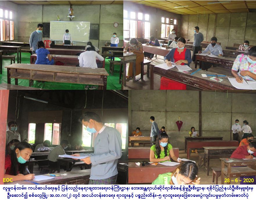 လူမှုဝန်ထမ်း၊ ကယ်ဆယ်ရေးနှင့် ပြန်လည်နေရာချထားရေး ဝန်ကြီးဌာန၊ ဘေးအန္တရာယ်ဆိုင်ရာစီမံခန့်ခွဲမှုဦးစီးဌာန၊ ရခိုင်ပြည်နယ် ဦးစီးမှူးရုံးမှ ဦးဆောင်၍ (၂၈-၆-၂၀၂၀) ရက်နေ့တွင် အငယ်တန်းစာရေးရာထူးနှင့် ပစ္စည်းထိန်း-၅ ရာထူးများအတွက် သုတရေးရာ စာမေးပွဲအား စစ်တွေမြို့၊ အ.ထ.က(၂)၌ (၀၉:၀၀)နာရီအချိန်မှ (၁၁:၀၀)နာရီအချိန်အထိ စစ်ဆေးခဲ့ပြီး အငယ်တန်းစာရေးရာထူး အတွက် စာရင်းရှိ (၁၃၄)ဦး၊ ဖြေဆိုသူ (၆၆)ဦး၊ ပျက်ကွက် (၆၈)ဦးဖြစ်ပါသည်။ ပစ္စည်းထိန်း-၅ ရာထူးအတွက် စာရင်းရှိ (၇၇)ဦး၊ ဖြေဆိုသူ (၄၂)ဦး၊ ပျက်ကွက် (၃၅)ဦး ဖြစ်ကြောင်း သတင်းရရှိပါသည်။