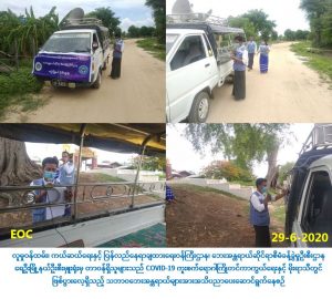 လူမှုဝန်ထမ်း၊ ကယ်ဆယ်ရေးနှင့် ပြန်လည်နေရာချထားရေးဝန်ကြီးဌာန၊ ဘေးအန္တရာယ် ဆိုင်ရာစီမံခန့်ခွဲမှုဦးစီးဌာန၊ ရေဦးမြို့နယ်ဦးစီးမှူးရုံးမှ (၂၉-၆-၂၀၂၀) ရက်နေ့တွင် စစ်ကိုင်းတိုင်းဒေသကြီး၊ ရေဦးမြို့နယ်၊ ဝက်သဲကျေးရွာ၊ မီးမောင်းကုန်းကျေးရွာ၊ တူမောင်း ကျေးရွာတို့အတွင်း မော်တော်ကားဖြင့် အသံချဲ့စက်၊ လော်စပီကာများ တင်ဆောင်ကာ Covid-19 ကြိုတင်ကာကွယ်ထိန်းချုပ်နိုင်ရန် ပြည်သူသို့ အသိပညာပေး ပန်ကြားချက်များ၊ မိုးကြိုးဘေးအန္တရာယ်၊ လေပြင်းဘေးအန္တရာယ်များနှင့် ပတ်သက်၍ ဆောင်ရန်/ရှောင်ရန် သတိပေးချက်များအား လှည့်လည်နှိုးဆော်ခြင်းများ ဆောင်ရွက်ခဲ့ကြောင်း သတင်းရရှိပါ သည်။