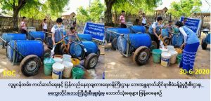 လူမှုဝန်ထမ်း၊ ကယ်ဆယ်ရေးနှင့် ပြန်လည်နေရာချထားရေး၀န်ကြီးဌာန၊ ဘေးအန္တရာယ်ဆိုင်ရာ စီမံခန့်ခွဲမှုဦးစီးဌာန၊ မကွေးတိုင်းဒေသကြီးဦးစီးမှူးရုံးမှ တာဝန်ရှိသူများသည် သောက်သုံးရေ ခက်ခဲသော မကွေးမြို့နယ်၊ ကြာကန်ကျေးရွာအုပ်စု၊ ကြာကန်ကျေးရွာ (ကွက်သစ်ပိုင်း)၊ နတ်ချောင်(တဲတိုက်)နှင့် ဦးအုန်းသီး(တဲတိုက်)ရှိ အိမ်ခြေ (၁၀၄) လုံး၊ အိမ်ထောင်စု(၁၁၈) စု၊ လူဦးရေ (၅၁၉) ဦးတို့အတွက် သောက်သုံးရေဂါလံ (၆၀၀၀) အား ( ၃၀- ၆-၂၀၂၀) ရက်နေ့ ( ၁၁ : ၀၀ ) နာရီအချိန်တွင် သွားရောက်ဖြန့်ဝေပေးခဲ့ပါကြောင်း သတင်းရရှိပါသည်။