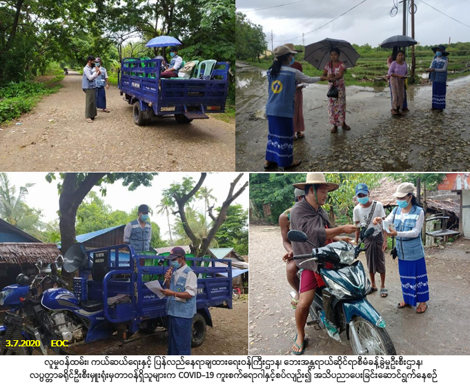 လူမှုဝန်ထမ်း၊ ကယ်ဆယ်ရေးနှင့် ပြန်လည်နေရာချထားရေးဝန်ကြီးဌာန၊ ဘေးအန္တရာယ်ဆိုင်ရာစီမံခန့်ခွဲမှုဦးစီး ဌာန၊ လပွတ္တာခရိုင်ဦးစီးမှူးရုံးမှတာဝန်ရှိသူများသည် အထွေထွေအုပ်ချုပ်ရေးဦးစီးဌာနနှင့် ပူးပေါင်း၍ (၃-၇-၂၀၂၀)ရက်နေ့၊ (၀၈:၀၀) နာရီအချိန်မှ (၁၂:၀၀) နာရီအချိန်အထိ လပွတ္တာမြို့နယ်၊ ကြိမ်ကုန်းကြီး ကျေးရွာအုပ်စုအတွင်းရှိ ရွှေပြည်သာကျေးရွာ၊ ပေချောင်းကျေးရွာ၊ ကုန်းတန်းကြီးကျေးရွာ၊ ပေါ်တော်မူ ကျေးရွာနှင့် တောင်ယာကွင်းကျေးရွာတို့၌ COVID-19 ကူးစက်ရောဂါနှင့်စပ်လျဉ်း၍ ကျန်းမာရေးနှင့် အားကစား၀န်ကြီးဌာနမှ ထုတ်ပြန်ထားသည့် အသိပေးကြေညာချက်များနှင့် သဘာဝဘေးအန္တရာယ်ဆိုင်ရာ အသိပညာပေးခြင်းတို့ကို Loud Speaker ဖြင့်လှည့်လှည်အသိပညာပေးနှိုးဆော်ခဲ့ပြီး လက်ကမ်းစာစောင်များ ဖြန့်ဝေပေးခဲ့ပါကြောင်း သတင်းရရှိပါသည်။