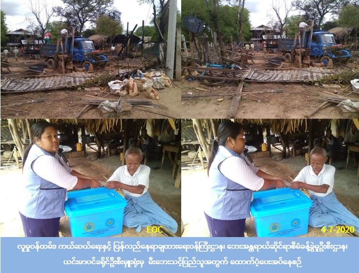 လူမှုဝန်ထမ်း၊ ကယ်ဆယ်ရေးနှင့် ပြန်လည်နေရာချထားရေးဝန်ကြီးဌာန၊ ဘေးအန္တရာယ်ဆိုင်ရာ စီမံခန့်ခွဲမှုဦးစီးဌာန၊ ယင်းမာပင်ခရိုင်ဦးစီးမှူးရုံးမှ တာဝန်ရှိသူများသည် စစ်ကိုင်းတိုင်းဒေသကြီး၊ ယင်းမာပင်ခရိုင်၊ ဆားလင်းကြီးမြို့နယ်၊ ရွှေသမင်ကျေးရွာအုပ်စု၊ ရွှေသမင်ကျေးရွာ (၄-၇-၂၀၂၀) ရက်နေ့တွင် ဖြစ်ပွားသော မီးဘေးအတွက် ကယ်ဆယ်ရေးပစ္စည်း(၁၇)မျိုး၊ (၁) အိမ်ထောင်စာ၊ ဆန်ရိက္ခာဖိုးငွေ (၁၆,၈၀၀) ကျပ်နှင့် အိမ်ဆောက်ပစ္စည်းငွေ (၂၀၀,၀၀၀) ကျပ်၊ စုစုပေါင်းတန်ဖိုးငွေ (၂၁၆,၈၀၀) ကျပ်အား (၄-၇-၂၀၂၀) ရက်နေ့တွင် ပြည်သူ့လက်ဝယ်အရောက် သွားရောက်ထောက်ပံ့ပေးအပ်ခဲ့ပါကြောင်း သိရှိရပါသည်။