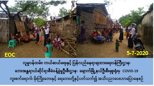 လူမှုဝန်ထမ်း၊ ကယ်ဆယ်ရေးနှင့် ပြန်လည်နေရာချထားရေးဝန်ကြီးဌာန၊ ဘေးအန္တရာယ်ဆိုင်ရာစီမံခန်ခွဲမှုဦးစီးဌာန၊ မကွေးတိုင်းဒေသကြီး၊ ချောက်မြို့နယ်ဦးစီးမှူးရုံးမှ တာဝန်ရှိသူများသည် (၅-၇-၂၀၂၀) ရက်နေ့တွင် ချောက်မြို့၊ အမှတ်(၇)ရပ်ကွက်၊ ရွာဟောင်းရပ်တွင် (Covid-19) အသက်ရှူလမ်းကြောင်းဆိုင်ရာရောဂါနှင့်ပတ်သက်၍ အများပြည်သူများသိရှိလိုက်နာနိုင်ရန် ကျန်းမာရေး နှင့် အားကစားဝန်ကြီးဌာနမှ ထုတ်ပြန်ထားသော အသိပေးကြေငြာချက်များနှင့် မိုးကြိုးဘေး၊ ရေဘေးနှင့် စပ်လျဥ်း၍ ဌာနမှထုတ်ပြန်ထားသည့် လက်ကမ်းစာစောင်များပါ အချက်အလက်များ၊ သဘာဝဘေး အသိပညာပေးခြင်းအား ရပ်ကွက်များအတွင်း အသိပေးကြော်ငြာခြင်းများ ပြုလုပ်ခဲ့ကြောင်း သတင်းရရှိပါသည်။