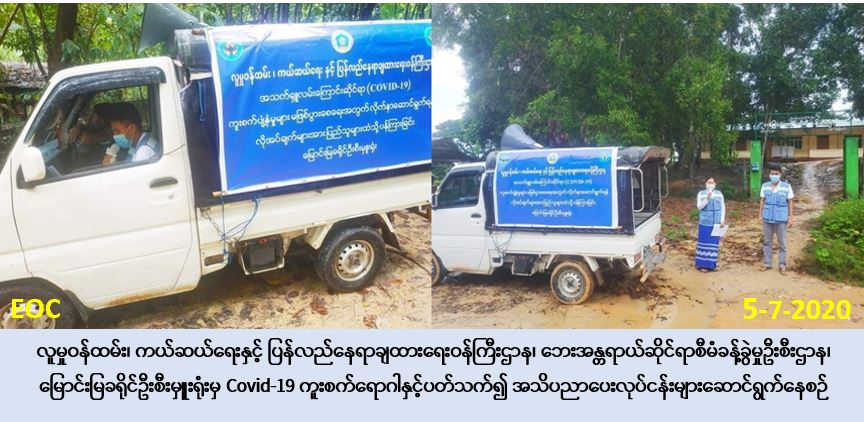 လူမှုဝန်ထမ်း၊ ကယ်ဆယ်ရေးနှင့် ပြန်လည်နေရာချထားရေး၀န်ကြီးဌာန၊ ဘေးအန္တရာယ်ဆိုင်ရာ စီမံခန့်ခွဲမှုဦးစီးဌာန၊ မြောင်းမြခရိုင်ဦးစီးမှူးရုံးမှ တာဝန်ရှိသူများသည် (၅-၇-၂၀၂၀) ရက်နေ့ ၊ နံနက် (၁၀:၀၀) နာရီအချိန်မှစ၍ ညနေ (၁၆:၀၀) နာရီအချိန်အထိ မြောင်းမြခရိုင်၊ မြောင်းမြ မြို့နယ်ရှိပြင်ပုံကျေးရွာ၊ ဝါးနွယ်ချောင်းကျေးရွာ၊ သုံးခွကျေးရွာ၊ ကျောင်းစုကျေးရွာ၊ ကမ်းနီ ကျေးရွာ၊ ဝါးဘိုးထောင်ကျေးရွာ၊ ဝါးကျောင်းကျေးရွာ၊ တံခွန်တိုင်ကျေးရွာတို့တွင် လတ်တလော နိုင်ငံအသီးသီးတွင် ကူးစက်ပြန့်ပွားလျှက်ရှိသော Covid -19 ကူးစက်ရောဂါနှင့် ပတ်သက်ပြီး ဆောင်ရန်/ရှောင်ရန်များနှင့် သဘာဝဘေးနှင့်ပတ်သတ်သည့် လိုက်နာဆောင်ရွက်ရန်များကို ရပ်ကွက်နေပြည်သူလူထုအား အသိပညာပေးလှည့်လည်ဟောပြောမှုများ ပြုလုပ်ဆောင်ရွက် ခဲ့ကြောင်း သတင်းရရှိပါသည်။