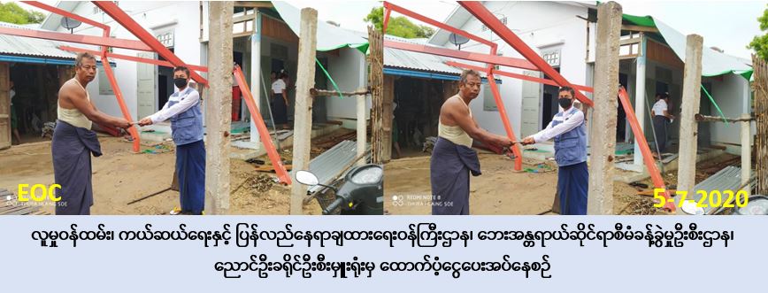 လူမှုဝန်ထမ်း၊ ကယ်ဆယ်ရေးနှင့် ပြန်လည်နေရာချထားရေး၀န်ကြီးဌာန၊ ဘေးအန္တရာယ်ဆိုင်ရာ စီမံခန့်ခွဲမှုဦးစီးဌာန၊ ညောင်ဦးခရိုင်ဦးစီးမှူးရုံးမှ တာဝန်ရှိသူများသည် စဉ့်ကူကျေးရွာအုပ်စု၊ သာစည်ကျေးရွာ၌ (၄-၇-၂၀၂၀) ရက်နေ့၊ (၁၆:၃၀)နာရီအချိန်တွင် လေတိုက်ခတ်မှုကြောင့် လူနေအိမ်ပေါ်သို့ မန်ကျည်းပင်ပြိုလဲကျခဲ့သဖြင့် တစ်စိတ်တစ်ပိုင်းပျက်စီးနေအိမ် (၁)လုံး၊ အိမ် ထောင်စု (၁) စုမှ လူဦးရေ (၇) ဦးတို့အတွက် ဆန်ရိက္ခာဖိုး (၁၄,၇၀၀)ကျပ်နှင့် အိမ်ဆောက် ပစ္စည်းဖိုး (၁၀၀,၀၀၀)ကျပ်၊ စုစုပေါင်းကယ်ဆယ်ရေးရန်ပုံငွေ (၁၁၄,၇၀၀)ကျပ်တို့ကို (၅-၇-၂၀၂၀) ရက်နေ့၊ (၁၆:၀၀)အချိန်၌ ဘေးသင့်ပြည်သူ၏ လက်ဝယ်အရောက် သွားရောက် ထောက်ပံ့ခဲ့ပါကြောင်း သတင်းရရှိပါသည်။