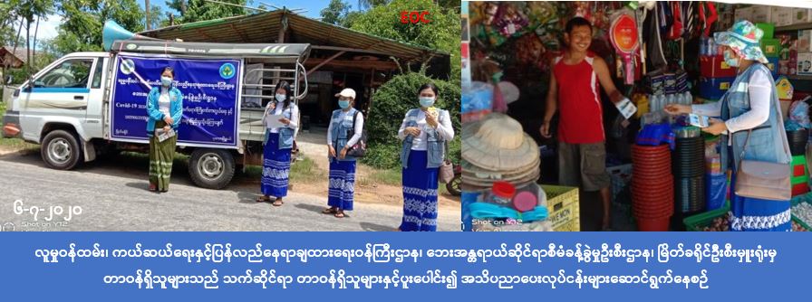 (၆-၇-၂၀၂၀) ရက်နေ့တွင် လူမှုဝန်ထမ်း၊ ကယ်ဆယ်ရေးနှင့် ပြန်လည်နေရာချထားရေးဝန်ကြီးဌာန၊ ဘေးအန္တရာယ် ဆိုင်ရာ စီမံခန့်ခွဲမှုဦးစီးဌာန၊ မြိတ်ခရိုင်ဦးစီးမှူးရုံးမှ တာဝန်ရှိသူများသည် ပုလောမြို့နယ်ဦးစီးမှူးရုံး၊ ပုလောမြို့ အထွေထွေအုပ်ချုပ်ရေးဦးစီးဌာနတို့နှင့်ပူးပေါင်း၍ ပုလောမြို့နယ်၊ အမှတ်(၃)(၄) ရပ်ကွက်၊ တိုကျေးရွာ၊ ပိတပ် ကျေးရွာ၊ မင်းပြင်ကျေးရွာနှင့် ဗိုင်းပြင်ကျေးရွာတို့တွင် (COVID -19) အသက်ရှူလမ်းကြောင်းဆိုင်ရာရောဂါနှင့် ပတ်သက်၍ အများပြည်သူသိရှိလိုက်နာနိုင်ရန် ကျန်းမာရေးနှင့်အားကစား ဝန်ကြီးဌာနမှ ထုတ်ပြန်ထားသော အသိပေးကြေငြာချက်များ၊ မိုးကြိုးဘေး၊ ရေဘေး၊ မြေပြိုဘေးတို့နှင့်စပ်လျဥ်း၍ ဌာနမှထုတ်ပြန်ထားသည့် လက်ကမ်းစာစောင်ပါအချက်အလက်များကို သဘာဝဘေးအသိပညာပေးခြင်းအား ဆောင်ရွက်ခဲ့ပြီး သဘာဝဘေး အသိပညာပေးလက်ကမ်းစာစောင်များဝေငှပေးခဲ့ကြောင်း သိရှိရပါသည်။