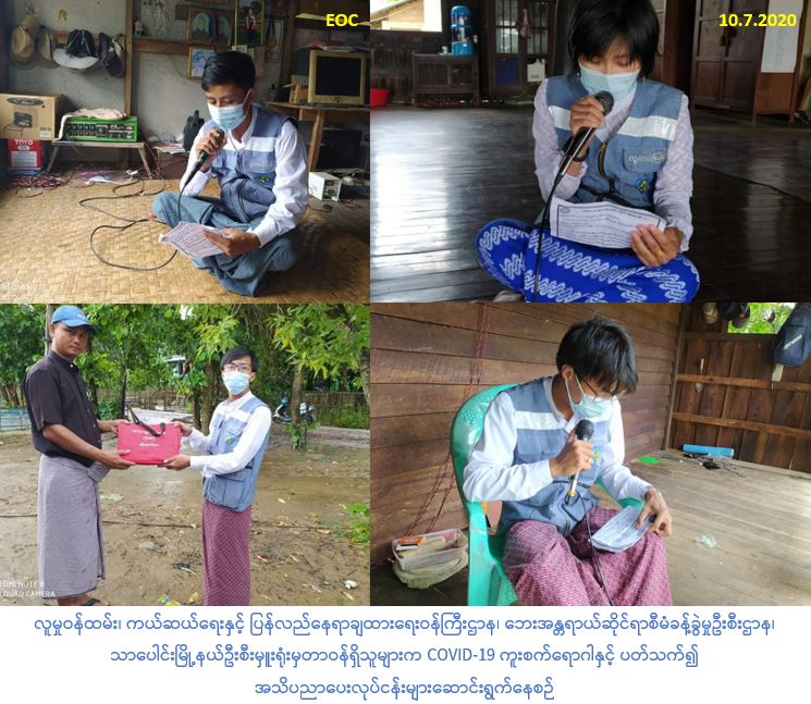 လူမှုဝန်ထမ်း၊ ကယ်ဆယ်ရေးနှင့် ပြန်လည်နေရာချထားရေးဝန်ကြီးဌာန၊ ဘေးအန္တရာယ်ဆိုင်ရာစီမံခန့်ခွဲမှုဦးစီးဌာန၊ သာပေါင်းမြို့နယ်ဦးစီးမှူးရုံးမှ တာဝန်ရှိသူများသည် ပုသိမ်ခရိုင်၊ သာပေါင်းမြို့နယ်၊ ရွှေရောင်ချကျေးရွာအုပ်စု၊ ရွှေရောင်ချကျေးရွာ၊ ဆိပ်သာကျေးရွာ၊ ညောင်ဝိုင်းကျေးရွာတို့၌ ကျေးရွာအုပ်ချုပ်ရေးမှူး၊ ရပ်မိရပ်ဖများ၊ ကျေးရွာရှိ တာ၀န်ရှိသူများနှင့် အတူ (၁၀-၇-၂၀၂၀)ရက်နေ့၌ (၁၂:၀၀)နာရီအချိန်၌ လက်တလောနိုင်ငံအသီးသီးတွင် ကူးစက်ပြန့်ပွားလျက်ရှိသော COVID-19 ကူးစက်ရောဂါနှင့် ပတ်သက်၍ အသိပညာပေးဟောပြောခြင်း၊ သဘာဝဘေးနှင့် ပတ်သတ်သည့် ဆောင်ရန်/ ရှောင်ရန်များကို ပြည်သူတို့အား ဒုတိယအကြိမ် အသိပညာပေးခြင်းနှင့် ကျန်းမာရေး အရေးပေါ်သုံး First Aid Kit များ ပေးအပ်ခဲ့ပါကြောင်း သတင်းရရှိပါသည်။