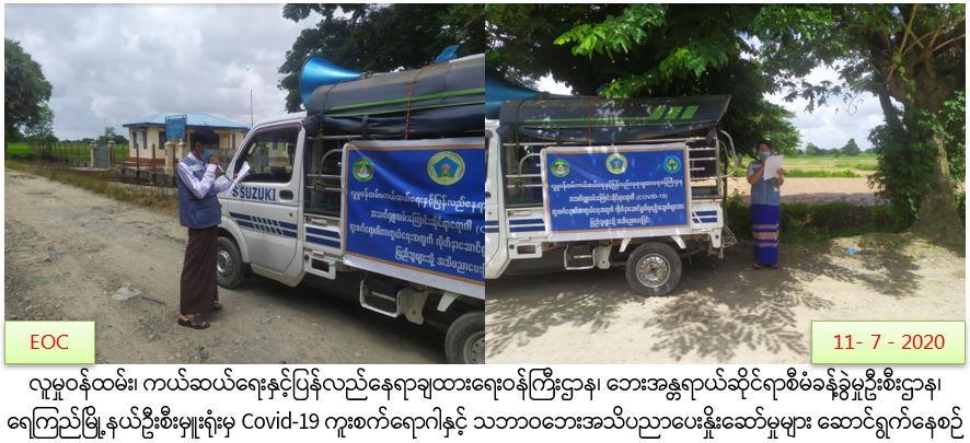 လူမှုဝန်ထမ်း၊ ကယ်ဆယ်ရေးနှင့်ပြန်လည်နေရာချထားရေးဝန်ကြီးဌာန၊ ဘေးအန္တရာယ်ဆိုင်ရာစီမံခန့်ခွဲမှုဦးစီးဌာန၊ ရေကြည်မြို့နယ်ဦးစီးမှူးရုံးမှတာဝန်ရှိသူများသည် ရေကြည်မြို့နယ်၊ ရုံးတုံးကျေးရွာအုပ်စု၊ ရုံးတုံးကျေးရွာ၊ ကြိမ်ချောင်းကျေးရွာ၊ ကံစုကျေးရွာ၊ရုံးတုံးဒွါရစုကျေးရွာ၊ ကစွန်းရိုးကျေးရွာအုပ်စု၊ ကညင်ကွင်းကျေးရွာအုပ်စုတို့တွင် (၁၁.၇.၂၀၂၀)ရက်နေ့၌ (၀၈:၄၅)နာရီမှ(၁၅:၃၀)နာရီအထိ Covid-19 ကူးစက်ရောဂါနှင့် သဘာဝဘေးနှင့်ပက်သက်သည့် ဆောင်ရန်/ရှောင်ရန်များကို ေကျးရွာ/ရပ်ကွက်နေပြည်သူတို့အား အသိပညာပေးဟောပြောဆောင်ရွက်ခဲ့ကြောင်း သတင်းရရှိပါသည်။