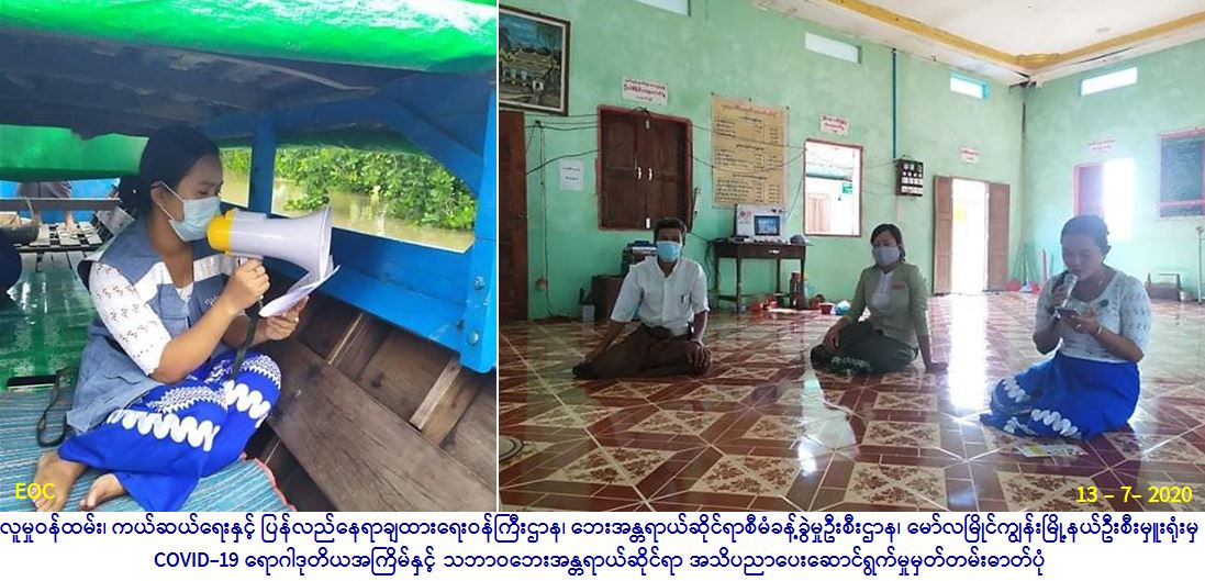 လူမှုဝန်ထမ်း၊ ကယ်ဆယ်ရေးနှင့် ပြန်လည်နေရာချထားရေး ဝန်ကြီးဌာန၊ ဘေးအန္တရာယ်ဆိုင်ရာစီမံခန့်ခွဲမှုဦးစီးဌာန၊ မော်လမြိုင် ကျွန်းမြို့နယ်ဦးစီးမှူးရုံးမှ တာဝန်ရှိသူများသည် အထွေထွေ အုပ်ချုပ်ရေးဦးစီးဌာနနှင့်အတူပူးပေါင်း၍ (၁၃-၇-၂၀၂၀)ရက်နေ့၊ (၀၉:၀၀)နာရီအချိန်မှ (၁၂:၀၀)နာရီအချိန်ထိ မော်လမြိုင် ကျွန်းမြို့နယ်၊ နုံးကျွံကျေးရွာအုပ်စုအတွင်းရှိ နုံးကျွံကျေးရွာ၊ လေးထပ်ကြီး ကျေးရွာနှင့် အောက်ချွန်းကျေးရွာတို့အတွင်း Covid-19 ကူးစက်မှု ဒုတိယလှိုင်းမဖြစ်ပွားစေရန်အတွက် အများပြည်သူများ သိရှိ လိုက်နာရန်အချက်များအားကွင်းဆင်း၍ ကျန်းမာရေးနှင့် အားကစားဝန်ကြီးဌာနမှ ထုတ်ပြန်ထားသော အသိပေး ကြေညာချက်များ အား လော်စပီကာများဖြင့် လှည့်လှည်၍ အသိပညာပေးဆောင်ရွက်ခြင်း၊ မိုးကြိုးဘေး၊ မုန်တိုင်းဘေး စသည့် ဘေးအန္တရာယ်ဆိုင်ရာ အသိပညာပေးခြင်းနှင့် လက်ကမ်း စာစောင်ဝေငှခြင်းများဆောင်ရွက်ခဲ့ပါကြောင်း သတင်းရရှိပါသည်။