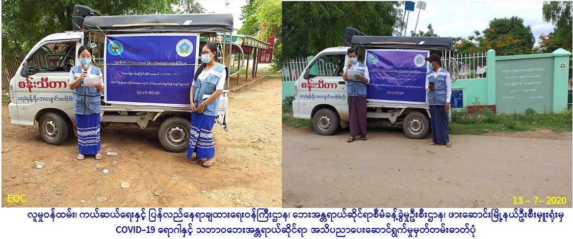 လူမှုဝန်ထမ်း၊ ကယ်ဆယ်ရေးနှင့်ပြန်လည်နေရာချထားရေးဝန်ကြီးဌာန၊ ဘေးအန္တရာယ်ဆိုင်ရာစီမံခန့်ခွဲမှုဦးစီးဌာန၊ ဖားဆောင်း မြို့နယ်ဦးစီးမှူးရုံးမှ တာဝန်ရှိသူများသည် (၁၃.၇.၂၀၂၀) ရက်နေ့တွင် ဖားဆောင်းမြို့နယ်၊ ဖားဆောင်းကျေးရွာအုပ်စု၊ တောင်ပေါ် ကျေးရွာ၊ ပါပုကျေးရွာ၊ နန့်ကစ်ကျေးရွာ၊ ဖားဆောင်းမြို့တောင်ပိုင်းရပ်ကွက်၊ မြောက်ပိုင်းရပ်ကွက်များရှိ ပြည်သူများအား COVID-19 ကူးစက်ရောဂါပြန့်ပွားမှုမဖြစ်ပွားစေရန်အတွက် သိရှိလိုက်နာရန် အချက်များနှင့် သဘာဝဘေးအန္တရာယ်နှင့် စပ်လျဉ်းသည့် ဆောင်ရန်၊ ရှောင်ရန်များ အသိပညာပေး ဆောင်ရွက်ခဲ့ပါကြောင်း သတင်းရရှိပါသည်။