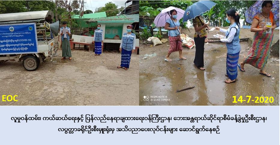လူမှုဝန်ထမ်း၊ ကယ်ဆယ်ရေးနှင့် ပြန်လည်နေရာချထားရေး၀န်ကြီးဌာန၊ ဘေးအန္တရာယ်ဆိုင်ရာ စီမံခန့်ခွဲမှုဦးစီးဌာန၊ လပွတ္တာခရိုင်ဦးစီးမှူးရုံးမှ တာဝန်ရှိသူများသည် အထွေထွေအုပ်ချုပ်ရေးဦးစီး ဌာနနှင့် အတူပူးပေါင်း၍ (၁၄-၇-၂၀၂၀)ရက်နေ့၊ (၀၉:၀၀) နာရီအချိန်မှ(၁၂:၀၀)နာရီအချိန်ထိ လပွတ္တာမြို့နယ်၊ သပြုကုန်းကျေးရွာအုပ်စုအတွင်းရှိ၊ ဇင်ရွှဲကျေးရွာ၊ ညောင်ပင်သာကျေးရွာ၊ ငါးခုံးမကျေးရွာနှင့် လွန်ချောင်းကျေးရွာများတို့တွင် Covid-19 အသက်ရှူလမ်းကြောင်းဆိုင်ရာ ရောဂါနှင့် ပတ်သက်၍ ကျန်းမာရေးနှင့်အားကစား၀န်ကြီးဌာနမှ ထုတ်ပြန်ထားသည့် အသိပေး ကြေညာချက်များ၊ သဘာဝဘေးအန္တရာယ်ဆိုင်ရာ အသိပညာပေးခြင်းများကို အများပြည်သူများ သိရှိလိုက်နာရန် Loud Speaker ဖြင့် လှည့်လည်၍ အသိပညာပေးခဲ့ပြီး လက်ကမ်းစာစောင်များ ဝေငှခြင်းများကို ပြုလုပ်ဆောင်ရွက်ခဲ့ကြောင်း သတင်းရရှိပါသည်။