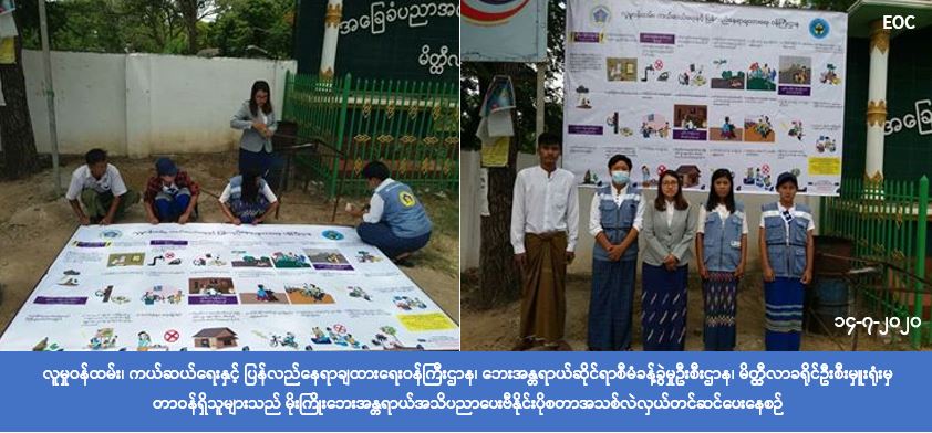 လူမှုဝန်ထမ်း၊ ကယ်ဆယ်ရေးနှင့် ပြန်လည်နေရာချထားရေးဝန်ကြီးဌာန၊ ဘေးအန္တရာယ်ဆိုင်ရာ စီမံခန့်ခွဲမှု ဦးစီးဌာန၊ မိတ္ထီလာခရိုင် ဦးစီးမှူးရုံးမှတာဝန်ရှိသူများသည် (၁၄-၇-၂၀၂၀) ရက်နေ့တွင် မိတ္ထီလာမြို့ အခြေခံပညာအထက်တန်းကျောင်းအမှတ် (၁) ကျောင်းရှေ့တွင် စိုက်ထူထားရှိသော ရာသီအလိုက် သဘာဝဘေးအန္တရာယ် အသိပညာပေးမြေစိုက်ဆိုင်းဘုတ်တွင် မိုးကြိုးဘေးအန္တရာယ် အသိပညာပေး ဗီနိုင်းပိုစတာကိုအသစ်လဲလှယ်တပ်ဆင်ခဲ့ကြောင်း သိရှိရပါသည်။