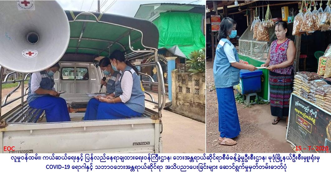 လူမှုဝန်ထမ်း၊ ကယ်ဆယ်ရေးနှင့် ပြန်လည်နေရာချထားရေးဝန်ကြီး ဌာန၊ ဘေးအန္တရာယ်ဆိုင်ရာစီမံခန့်ခွဲမှုဦးစီးဌာန၊ မုဒုံမြို့နယ်ဦးစီး မှူးရုံးမှ တာဝန်ရှိသူများသည် (၁၅-၇-၂၀၂၀) ရက်နေ့ (၁၀:၀၀) နာရီအချိန်မှ (၁၃:၀၀) နာရီအချိန်အထိ မွန်ပြည်နယ်၊ မော်လမြိုင် ခရိုင်၊ မုဒုံမြို့နယ်၊ ကျိုက်ရွဲကျေးရွာ၊ တော်ကူးကျေးရွာနှင့် တံခွန်တိုင်ကျေးရွာတို့တွင် COVID-19 ရောဂါကူးစက်ပျံ့နှံ့မှုမဖြစ်ပွား စေရေးနှင့် မိုးရာသီကာလအတွင်းဖြစ်ပွားလေ့ရှိသည့် မိုးကြိုးဘေး၊ မုန်တိုင်းဘေး၊ ရေဘေး၊ မြေပြိုဘေးအန္တရာယ်များ ကြိုတင် ပြင်ဆင်ရေး အသိပညာပေးခြင်းနှင့် လက်ကမ်းစာစောင်များဖြန့်ဝေခြင်းတို့အား ဆောင်ရွက်ခဲ့ပါကြောင်း သတင်းရရှိပါသည်။