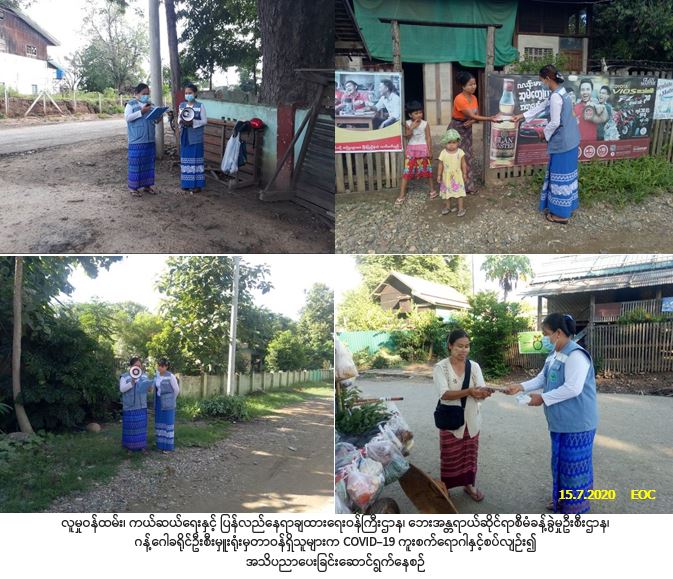 လူမှုဝန်ထမ်း၊ ကယ်ဆယ်ရေးနှင့် ပြန်လည်နေရာချထားရေးဝန်ကြီးဌာန၊ ဘေးအန္တရာယ်ဆိုင်ရာစီမံခန့်ခွဲမှုဦးစီး ဌာန၊ ဂန့်ဂေါခရိုင်ဦးစီးမှူးရုံးမှတာဝန်ရှိသူများသည် (၁၅-၇-၂၀၂၀)ရက်နေ့၊ (၀၇:၃၀)နာရီအချိန်မှ (၁၁:၀၀)နာရီအချိန်အထိ ဂန့်ဂေါမြို့နယ်၊ ကျောတိုက်ရပ်ကွက်တို့၌ COVID-19 ကူးစက်ရောဂါနှင့်စပ်လျဉ်း၍ ဆောင်ရန်/ရှောင်ရန်အချက်များ၊ မိုးရာသီကာလတွင်ဖြစ်ပွားလေ့ရှိသည့် မိုးကြိုးဘေး၊ လေပြင်းဘေးတို့နှင့် စပ်လျဉ်း၍ ကြိုတင်ပြင်ဆင်နိုင်ရန် Handspeaker ဖြင့် အသိပညာပေးနှိုးဆော်ခဲ့ပြိီး လက်ကမ်းစာစောင်များ ဖြန့်ဝေပေးခဲ့ပါကြောင်း သတင်းရရှိပါသည်။