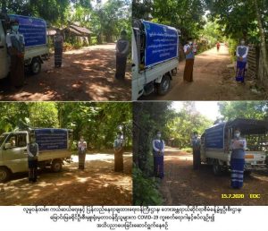 လူမှုဝန်ထမ်း၊ ကယ်ဆယ်ရေးနှင့် ပြန်လည်နေရာချထားရေးဝန်ကြီးဌာန၊ ဘေးအန္တရာယ်ဆိုင်ရာစီမံခန့်ခွဲမှုဦးစီး ဌာန၊ မြောင်းမြခရိုင်ဦးစီးမှူးရုံးမှတာဝန်ရှိသူများသည် (၁၅-၇-၂၀၂၀)ရက်နေ့၊ (၁၀:၀၀)နာရီအချိန်မှ (၁၃:၃၀)နာရီအချိန်အထိ မြောင်းမြခရိုင်၊ မြောင်းမြမြို့နယ်အတွင်းရှိ ကုန်းထိပ်ပြောင်ကျေးရွာ၊ တောင်ကမ္ဘားကျေးရွာ၊ တော်လှကျေးရွာ၊ ကွမ်းသီးချောင်းကျေးရွာ၊ တောင်ဇလဲကျေးရွာတို့၌ COVID-19 ကူးစက်ရောဂါထိန်းချုပ်ရေးနှင့် အရေးပေါ်တုန့်ပြန်ရေးကော်မတီမှ (၃၀-၆-၂၀၂၀)ရက်နေ့အထိ ထုတ်ပြန်ပြီးခဲ့သည့် တားမြစ်မိန့်နှင့် ညွှန်ကြားချက်များ၊ ရာသီအလိုက်ဖြစ်ပွားလေ့ရှိသည့် သဘာဝဘေးအန္တရာယ်များနှင့်စပ်လျဉ်း၍ လှည့်လည်အသိပညာပေးနှိုးဆော်ခဲ့ပါကြောင်း သတင်းရရှိပါသည်။