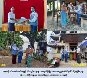 လူမှုဝန်ထမ်း၊ ကယ်ဆယ်ရေးနှင့် ပြန်လည်နေရာချထားရေး၀န်ကြီးဌာန၊ ဘေးအန္တရာယ်ဆိုင်ရာ စီမံခန့်ခွဲမှုဦးစီးဌာန၊ ဗန်းမော်ခရိုင်ဦးစီးမှူးရုံးမှ တာဝန်ရှိသူများသည်(၁၂-၇-၂၀၂၀)ရက်နေ့မှ(၁၅-၇-၂၀၂၀)ရက်နေ့ထိ ဧရာဝတီမြစ်မြစ်ရေမြင့်တက်မှုကြောင့် ဗန်းမော်မြို့နယ်၊ မင်းကျောင်းကုန်း ရပ်ကွက်၊ ဆင်ကုန်းရပ်ကွက်၊ ညောင်ပင်ရပ်ရပ်ကွက်၊ အလယ်ရပ်ရပ်ကွက်၊ မိုင်းကာကျေးရွာ၊ မံမင်ကျေးရွာ၊ ငပျောတောကျေးရွာ၊ လက်ပံတန်းကျေးရွာနှင့် စင်းခမ်းကျေးရွာတို့မှ စုစုပေါင်း အိမ်ထောင်စု (၂၉၈) စု၊ လူဦးရေ (၁၅၁၉) ဦးတို့အတွက် (၇) ရက်စာဆန်ဖိုးငွေ(၃,၁၈၉,၉၀ဝ/-) ကျပ်၊ အဝတ်mask လူ (၁) ဦး (၁) ခုနှုန်းဖြင့် (၁၅၁၉) ခုနှင့် အိမ်ထောင်စု(၁)စုလျှင် ဆပ်ပြာချောင်း (၁) ချောင်းနှုန်းဖြင့် (၂၉၈) ချောင်းတို့အား (၁၆-၇-၂၀၂၀)ရက်နေ့၊ (၁၃:၃၀) နာရီ အချိန်တွင့် ဘေးသင့်ကျေးရွာပြည်သူ့ထံသို့ အရောက်သွားရောက်ထောက်ပံ့ခဲ့ကြောင်း သတင်းရရှိ ပါသည်။