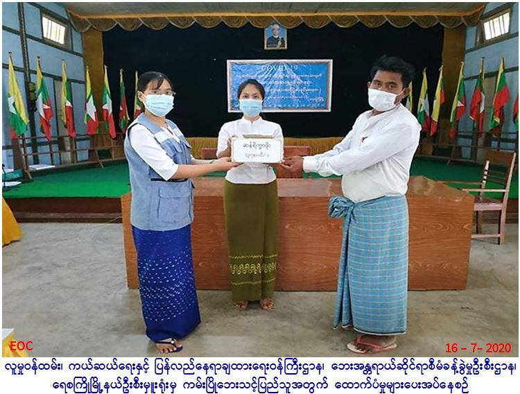 လူမှုဝန်ထမ်း၊ ကယ်ဆယ်ရေးနှင့် ပြန်လည်နေရာချထားရေး ဝန်ကြီးဌာန၊ ဘေးအန္တရာယ်ဆိုင်ရာစီမံခန့်ခွဲမှုဦးစီးဌာန၊ ရေစကြို မြို့နယ်ဦးစီးမှူးရုံးမှ တာဝန်ရှိသူများသည် ရေစကြိုမြို့နယ်၊ နွယ်နီကျေးရွာအုပ်စု၊ နွယ်နီကျွန်းကျေးရွာနှင့် မအူအောက်ဆိပ်ကျေးရွာ အုပ်စု၊ မအူငယ်ကျေးရွာတို့တွင် (၁၆-၇-၂၀၂၀) ရက်နေ့၊ (၀၈:၀၀)နာရီအချိန်၌ ချင်းတွင်းမြစ်ရေတိုက်စား ကမ်းပါးပြိုကျမှုကြောင့် ကြိုတင်ဖျက်သိမ်း ပြောင်းရွှေ့ခြင်းများ ဆောင်ရွက်ခဲ့ကြရာ ကြိုတင်ဖျက်သိမ်းပြောင်းရွှေ့ လူနေအိမ် (၅)လုံး၊ အိမ်ထောင်စု(၅)စု၊ လူဦးရေ (၁၈)ဦးတို့အတွက် အိမ်ဆောက်ပစ္စည်းဖိုး (၅၀၀၀၀ဝ/-)ကျပ်၊ ဆန်ရိက္ခာဖိုး(၃၇၈၀ဝ/-)ကျပ်၊ စုစုပေါင်းကျပ်(၅၃၇၈၀ဝ/-)ကျပ်အား(၁၆-၇-၂၀၂၀)ရက်နေ့၊ (၁၅:၀၀)အချိန်တွင် ရေစကြိုမြို့နယ်အထွေထွေအုပ်ချုပ်ရေးရုံး၌ မြို့နယ်အထွေထွေအုပ်ချုပ်ရေး ရုံးမှ တာဝန်ရှိသူနှင့်အတူ ကျေးရွာအုပ်ချုပ်ရေးမှူးလက်ဝယ်အရောက် ထောက်ပံ့ပေးအပ်ခဲ့ကြောင်း သတင်းရရှိပါသည်။