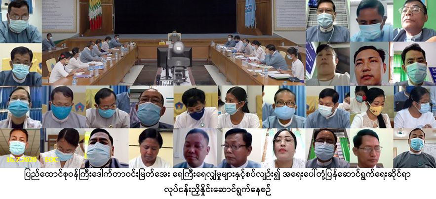 ထို့နောက် ဘေးအန္တရာယ်ဆိုင်ရာစီမံခန့်ခွဲမှုဦးစီးဌာန၊ ပြည်ထောင်စုနယ်မြေ၊ နေပြည်တော် တိုင်းဦးစီးမှူးနှင့် တိုင်းဒေသကြီး/ပြည်နယ်ဦးစီးမှူးများက မိမိတို့ဒေသအလိုက် လတ်တလော ဖြစ်ပေါ်လျက် ရှိသည့် ရေကြီးရေလျှံမှုများနှင့် ဖြစ်ပေါ်လာနိုင်သည့်အခြေအနေများ၊ ရေကြီးရေလျှံမှု ဖြစ်ပေါ်လာပါက ဘေးလွတ်ရာသို့ ရွှေ့ပြောင်းနိုင်ရန်စီစဉ်ထားမှုများ၊ ယင်းသို့ရွှေ့ပြောင်းရပါက COVID-19 ထိန်းချုပ်၊ ကာကွယ်ရေး ညွှန်ကြားချက်များနှင့်အညီထားရှိနိုင်ရန် ကြိုတင်ပြင်ဆင် ဆောင်ရွက်မှုများနှင့် လိုအပ်ချက်များကို တင်ပြခဲ့ရာ ပြည်ထောင်စုဝန်ကြီး၊ ဒုတိယဝန်ကြီးနှင့် ဘေးအန္တရာယ်ဆိုင်ရာစီမံခန့်ခွဲမှုဦးစီးဌာန ညွှန်ကြားရေးမှူးချုပ်တို့က ညှိနှိုင်းဖြည့်ဆည်းဆောင်ရွက် ပေးခဲ့ကြကြောင်း သတင်းရရှိပါသည်။
