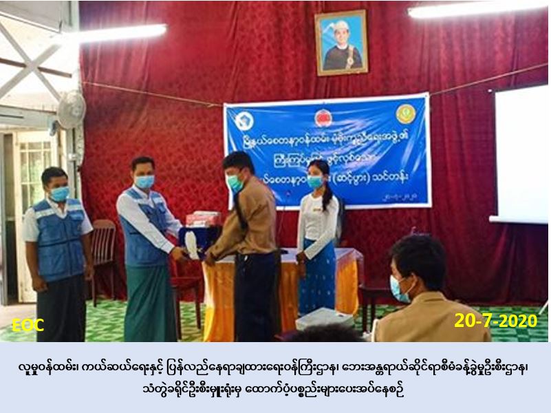 လူမှုဝန်ထမ်း၊ ကယ်ဆယ်ရေးနှင့် ပြန်လည်နေရာချထားရေးဝန်ကြီးဌာန၊ ဘေးအန္တရာယ်ဆိုင်ရာ စီမံခန့်ခွဲမှုဦးစီးဌာန၊ သံတွဲခရိုင်ဦးစီးမှုးရုံးမှ တာဝန်ရှိသူများသည်(၂၀-၇-၂၀၂၀) ရက်နေ့၊ နံနက် (၁၀:၀၀) အချိန်တွင် Irrawaddy Green Towers Ltd နှင့်ပူးပေါင်း၍ ကိုရိုနာဗိုင်းရပ်စ်ရောဂါ Covid-19 ကြိုတင်ကာကွယ်ရေး အထောက်အကူပြု ပစ္စည်းများကို သံတွဲခရိုင် ၊ သံတွဲမြို့နယ် အထွေထွေအုပ်ချုပ်ရေး ဦးစီးဌာနခန်းမ၌ ကျင်းပပြုလုပ်သော မြို့နယ်စေတနာ့ဝန်ထမ်း ပံ့ပိုးကူရေးအဖွဲ့၏ ကြီးကြပ်မှုဖြင့် ဖွင့်လှစ်သော မြို့နယ်စေတနာ့ဝန်ထမ်း (ဆင့်ပွား) သင်တန်း၌ လှူဒါန်းပေးအပ်ခဲ့ကြောင်း သတင်းရရှိပါသည်။