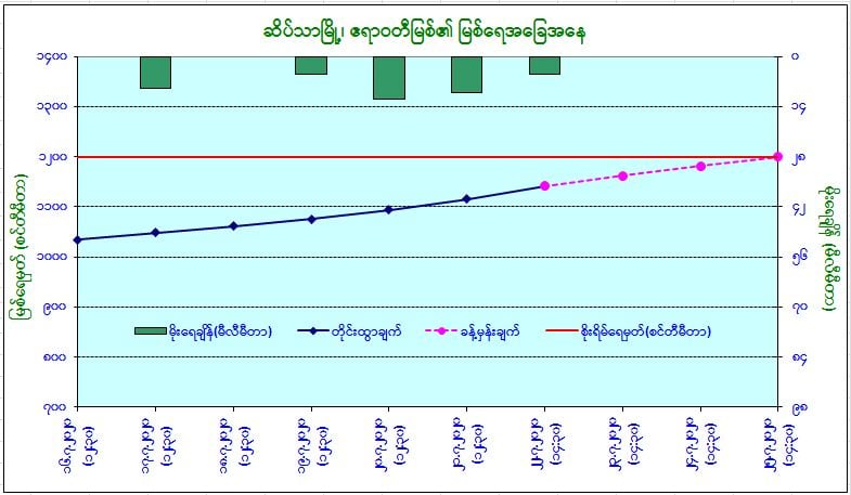 ယနေ့မြန်မာစံတော်ချိန် (၁၄:၃၀)နာရီအချိန် တိုင်းထွာချက်အရ ဧရာဝတီမြစ်ရေ သည် ဆိပ်သာမြို့တွင် ယင်းမြို့၏ စိုးရိမ်ရေမှတ်အောက် (၂)ပေခန့်တွင် ရောက်ရှိနေပါသည်။ အဆိုပါမြစ်ရေသည် နောက်(၃)ရက်အတွင်း ယင်းမြို့၏ စိုးရိမ်ရေမှတ်သို့ ရောက်ရှိနိုင်ပါသည်။