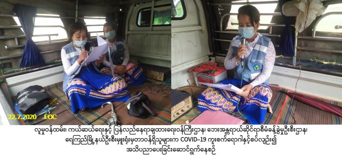 လူမှုဝန်ထမ်း၊ ကယ်ဆယ်ရေးနှင့် ပြန်လည်နေရာချထားရေးဝန်ကြီးဌာန၊ ဘေးအန္တရာယ်ဆိုင်ရာစီမံခန့်ခွဲမှုဦးစီး ဌာန၊ ရေကြည်မြို့နယ်ဦးစီးမှူးရုံးမှတာဝန်ရှိသူများသည် (၂၂-၇-၂၀၂၀)ရက်နေ့၊ (၀၈:၄၅) နာရီအချိန်မှစတင်၍ ရေကြည်မြို့နယ်၊ ရေသိုးကျေးရွာအုပ်စု၊ ရေသိုးကြီးကျေးရွာ၊ လက်ပန်ကုန်းကျေးရွာ၊ ရေသိုးလေးကျေးရွာ၊ ရွာသစ်ကျေးရွာနှင့် ချင်းကုန်းကျေးရွာတို့၌ COVID-19 ရောဂါနှင့်စပ်လျဉ်း၍ ဒုတိယလှိုင်း ကူးစက်မှုမဖြစ်ပွားစေရန် ဆောင်ရန်/ရှောင်ရန်အချက်များ၊ သဘာဝဘေးအန္တရာယ်များနှင့်စပ်လျဉ်း၍ ဆောင်ရန်/ရှောင်ရန်အချက်များကို အသိပညာပေးနှိုးဆော်ခဲ့ပါကြောင်း သတင်းရရှိပါသည်။