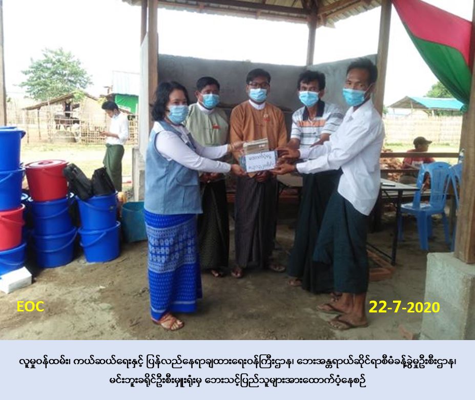 လူမှုဝန်ထမ်း၊ ကယ်ဆယ်ရေးနှင့် ပြန်လည်နေရာချထားရေးဝန်ကြီးဌာန၊ ဘေးအန္တရာယ်ဆိုင်ရာ စီမံခန့်ခွဲမှုဦးစီးဌာန၊ မင်းဘူးခရိုင်ဦးစီးမှူးရုံးမှ တာဝန်ရှိသူများသည် မင်းဘူးမြို့နယ်၊ နန်းတော် ကုန်းကျေးရွာ၌ (၅-၇-၂၀၂၀) ရက်နေ့တွင်ဖြစ်ပွားခဲ့သော ဧရာဝတီမြစ်ရေတိုက်စား၍ ကမ်းပြိုမှု ကြောင့် ကြိုတင်ပြောင်းရွှေ့အိမ်ထောင်စု (၇၇)စုတို့ အတွက် အိမ်ဆောက်ပစ္စည်းဖိုးထောက်ပံ့ငွေ (၇,၇၀၀,၀၀ဝ/-)ကျပ် နှင့် ဘေးသင့်လူဦးရေ (၂၉၂)ဦးတို့အတွက် ဆန်ရိက္ခာ (၇)ရက်စာဖိုး ထောက်ပံ့ငွေ(၆၁၃,၂၀ဝ/-)ကျပ်၊ စုစုပေါင်းထောက်ပံ့ပေးအပ်ငွေ (၈၃၁၃၂၀ဝိ/-)ကျပ် တို့ကို တိုင်းဒေသကြီးလွှတ်တော်ကိုယ်စားလှယ်၊ မြို့နယ်အုပ်ချုပ်ရေးမှူး ၊ ကျေးရွာအုပ်ချုပ်ရေးမှူးတို့ နှင့်အတူ (၂၂-၇-၂၀၂၀) ရက်နေ့ ၊ (၁၄:၀၀) နာရီအချိန်တွင် ဘေးသင့်ပြည်သူများထံသို့ လက်ဝယ်အရောက် ထောက်ပံ့ပေးအပ်ခဲ့ကြောင်း သတင်းရရှိပါသည်။