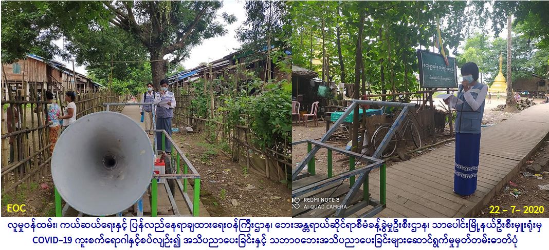 လူမှုဝန်ထမ်း၊ ကယ်ဆယ်ရေးနှင့်ပြန်လည်နေရာချထားရေးဝန်ကြီးဌာန၊ ဘေးအန္တရာယ်ဆိုင်ရာစီမံခန့်ခွမှုဦးစီးဌာန၊ သာပေါင်း မြို့နယ်ဦးစီး မှူးရုံးမှ တာဝန်ရှိသူများသည် (၂၂-၇-၂၀၂၀) ရက်နေ့၊ (၁၁:၀၀) နာရီအချိန်တွင် သာပေါင်းမြို့နယ်၊ ဒါးကညောင်ကုန်း ကျေးရွာအုပ်စု၊ ဒါးကညောင်ကုန်းကျေးရွာ၊ ဒါးကမ ကျည်းကုန်းကျေးရွာတို့တွင် Covid-19 ဒုတိယလှိုင်းကူးစက်မှု မဖြစ်ပွားစေရန် နှင့် သဘာဝဘေးနှင့်ပက်သက်သည့် ဆောင်ရန်/ရှောင်ရန်များကို ကျေးရွာ/ရပ်ကွက်နေ မိဘပြည်သူတို့အား အသိပညာပေး ဟောပြောဆောင်ရွက်ခဲ့ပါကြောင်း သတင်းရရှိပါသည်။