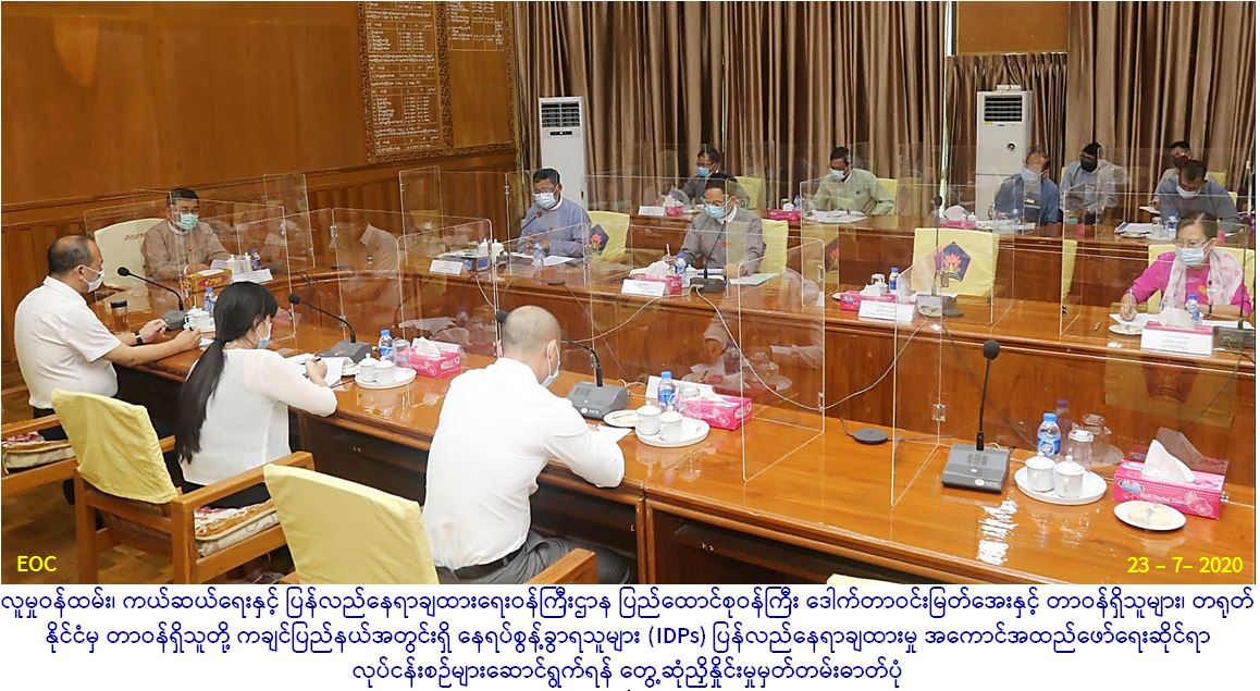 အစည်းအဝေးသို့ ကချင်ပြည်နယ်အတွင်းရှိ နေရပ်စွန့်ခွာရသူများ (IDPs) ပြန်လည်နေရာချထားမှု အကောင်အထည်ဖော်ရေး ဆိုင်ရာလုပ်ငန်းအဖွဲ့ခေါင်းဆောင် ဒုတိယဝန်ကြီးဦးစိုးအောင်၊ နိုင်ငံတော်အတိုင်ပင်ခံရုံးဝန်ကြီးဌာန ညွှန်ကြားရေးမှူးချုပ် ဦးကျော်လွင်၊ လူမှုဝန်ထမ်းဦးစီးဌာန ညွန်ကြားရေးမှူးချုပ် ဒေါက်တာစန်းစန်းအေးနှင့် Power China Kunming Engineering Corporation မှတာဝန်ရှိသူများ တက်ရောက်ခဲ့ကြကြောင်း သတင်းရရှိပါသည်။
