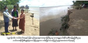 လူမှုဝန်ထမ်း၊ ကယ်ဆယ်ရေးနှင့် ပြန်လည်နေရာချထားရေးဝန်ကြီးဌာန၊ ဘေးအန္တရာယ်ဆိုင်ရာစီမံခန့်ခွဲမှုဦးစီး ဌာန၊ ဟင်္သာတခရိုင်ဦးစီးမှူးရုံးမှတာဝန်ရှိသူများသည် မြန်အောင်မြို့နယ်၊ ရွှေကျင်အုပ်စု၊ ဘုရားလှကျေးရွာ၌ (၁၈-၇-၂၀၂၀)ရက်နေ့တွင် ဖြစ်ပွားခဲ့သော ကမ်းပြိုမှုကြောင့် ပျက်စီးနေအိမ် (၁)လုံးအတွက် အိမ်ဆောက်ပစ္စည်းဖိုးထောက်ပံ့ငွေ (၁၀၀,၀၀၀/-)ကျပ်၊ ဘေးသင့်လူဦးရေ (၂)ဦးအတွက် ဆန်ရိက္ခာ(၇) ရက်စာဖိုးထောက်ပံ့ငွေ (၄,၂၀၀/-)ကျပ်တို့ကို (၂၃-၇-၂၀၂၀)ရက်နေ့၊ (၁၁:၄၅)နာရီအချိန်တွင် တာဝန်ရှိသူများနှင့်အတူ ဘေးသင့်ပြည်သူများထံသို့ လက်ဝယ်အရောက် ထောက်ပံ့ပေးအပ်ခဲ့ပါကြောင်း သတင်းရရှိပါသည်။