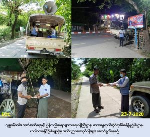လူမှုဝန်ထမ်း၊ ကယ်ဆယ်ရေးနှင့် ပြန်လည်နေရာချထားရေးဝန်ကြီးဌာန၊ ဘေးအန္တရာယ်ဆိုင်ရာ စီမံခန့်ခွဲမှုဦးစီးဌာန၊ ဟင်္သာတခရိုင်ဦးစီးမှူးရုံးမှ တာဝန်ရှိသူများသည် (၂၃-၇-၂၀၂၀)ရက်နေ့တွင် ဇလွန်မြို့နယ်၊ (ကတော့ကရက်အုပ်စု ၊ကတော့ကရက်၊ ခင်ပြည့်ကျေးရွာနှင့် စွံပိအုပ်စု၊ စွံပိ ၊ မကျီးသုံးပင်ကျေးရွာတို့တွင် နံနက် (၀၈:၀၀)နာရီအချိန်မှ (၁၁:၀၀)နာရီအချိန်ထိလည်းကောင်း၊ ဟင်္သာတမြို့နယ်၊ (တာကလေးနှင့်ပန်းဘဲတန်း) ရပ်ကွက်တို့တွင် ည(၁၈:၀၀) နာရီအချိန်မှ (၂၀:၀၀) နာရီအချိန်ထိလည်းကောင်း ကျန်းမာရေးနှင့်အားကစားဝန်ကြီးဌာနမှ ထုတ်ပြန်ထား သော Covid-19 ကူးစက်မှု ဒုတိယလှိုင်းမဖြစ်စေရန် (ဒုတိယအကြိမ်) အသိပညာပေးခြင်း လုပ်ငန်းများနှင့် ဧရာဝတီတိုင်းဒေသကြီး Covid -19 ထိန်းချုပ်ရေးနှင့် အရေးပေါ်တုံ့ပြန်ရေး ကော်မတီမှ (၁၄-၇-၂၀၂၀) ရက်နေ့အထိ ထုတ်ပြန်ပြီးဖြစ်သည့် တားမြစ်မိန့်နှင့် ညွန်ကြားချက် အားလည်းကောင်း၊ ရာသီအလိုက်ဖြစ်ပွားတတ်သော သဘာဝဘေးအန္တရာယ်များနှင့် ပတ်သက် သည့် သဘာဝဘေး အသိပညာပေးခြင်းတို့အားလည်းကောင်း၊ အများပြည်သူများ သိရှိလိုက် နာရန် ကွင်းဆင်းလှည့်လှည်၍ အသိပညာပေးလုပ်ငန်းများ ပြုလုပ်ဆောင်ရွက်ခဲ့ကြောင်း သတင်းရရှိပါသည်။
