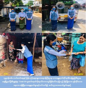 လူမှုဝန်ထမ်း၊ ကယ်ဆယ်ရေးနှင့် ပြန်လည်နေရာချထားရေးဝန်ကြီးဌာန၊ ဘေးအန္တရာယ်ဆိုင်ရာစီမံခန့်ခွဲမှုဦးစီးဌာန၊ ရေးမြို့နယ်ဦးစီးမှူးရုံးမှ တာဝန်ရှိသူများသည် (၂၃-၇-၂၀၂၀) ရက်နေ့ (၁၀:၀၀) နာရီအချိန်မှ (၁၄:၀၀) နာရီအချိန်အထိ မွန်ပြည်နယ်၊ မော်လမြိုင်ခရိုင်၊ ရေးမြို့နယ်၊ လမိုင်းမြို့၊ မြို့မ(၁)ရပ်ကွက်၊မြို့မ(၂)ရပ်ကွက်နှင့် မြို့မ(၃)ရပ်ကွက်တို့တွင် COVID-19 ရောဂါကူးစက်ပြန့်နှံ့မှုမဖြစ်ပွားစေရေးနှင့် မိုးရာသီကာလအတွင်းဖြစ်ပွားလေ့ရှိသည့် မိုးကြိုးဘေး၊ မုန်တိုင်းဘေး၊ ရေဘေး၊ မြေပြိုဘေးအန္တရာယ်များနှင့်ပတ်သက်၍ ကြိုတင်ပြင်ဆင်ရေးအသိပညာပေးခြင်းနှင့် လက်ကမ်းစာစောင်များ ဖြန့်ဝေပေးခြင်းများကို ဆောင်ရွက်ခဲ့ပါကြောင်း သတင်းရရှိပါသည်။