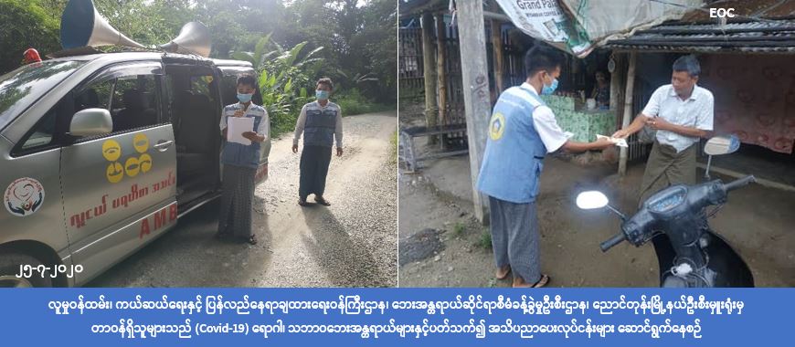လူမှုဝန်ထမ်း၊ ကယ်ဆယ်ရေးနှင့် ပြန်လည်နေရာချထားရေးဝန်ကြီးဌာန၊ ဘေးအန္တရာယ်ဆိုင်ရာ စီမံခန့်ခွဲမှုဦးစီးဌာန၊ ညောင်တုန်းမြို့နယ်ဦးစီးမှူးရုံးမှ တာဝန်ရှိသူများသည် (၂၅-၇-၂၀၂၀) ရက်နေ့တွင် ညောင်တုန်းမြို့နယ်၊ နတ်ပေးကျေးရွာအုပ်စုနှင့် ကညင်ကောက်ကြီးကျေးရွာအုပ်စုအတွင်းရှိ ကျေးရွာများ၌ (Covid-19)ကူးစက်ရောဂါ ဒုတိယလှိုင်းမဖြစ်ပွားစေရန်အတွက် ဒုတိယအကြိမ် အသိပညာပေးခြင်းနှင့် သဘာဝဘေး အန္တရာယ်ဆိုင်ရာ ဆောင်ရန်၊ ရှောင်ရန်များအား အသိပညာပေးခြင်းလုပ်ငန်းများ ဆောင်ရွက်ခဲ့၍ လက်ကမ်းစာစောင်များ ဖြန့်ဝေပေးခဲ့ကြောင်း သိရှိရပါသည်။