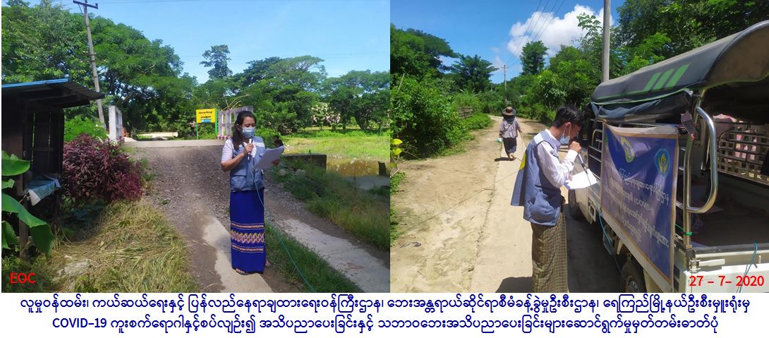 လူမှုဝန်ထမ်း၊ ကယ်ဆယ်ရေးနှင့် ပြန်လည်နေရာချထားရေး ဝန်ကြီးဌာန၊ ဘေးအန္တရာယ်ဆိုင်ရာစီမံခန့်ခွဲမှုဦးစီးဌာန၊ ရေကြည် မြို့နယ်ဦးစီးမှုးရုံးမှ တာဝန်ရှိသူများသည် (၂၇-၇-၂၀၂၀)ရက်နေ့၊ (၀၉:၀၀)နာရီအချိန်မှစ၍ ရေကြည်မြို့နယ်၊ ယိုးဒယားတက် ကျေးရွာအုပ်စု၊ ယိုးဒယားတက်ကျေးရွာ၊ အနောက်စုကျေးကျေးရွာ၊ သာယာကုန်းကျေးရွာ၊ ဘန့်ဘွေးကုန်းကျေးရွာနှင့် ပန်းတောရိုး ကျေးရွာတို့တွင် Covid-19 ဒုတိယလှိုင်းကူးစက်မှု မဖြစ်ပွားရေရန်နှင့် သဘာဝဘေးနှင့် ပက်သက်သည့်ဆောင်ရန်/ရှောင်ရန်များကို ကျေးရွာ/ရပ်ကွက်နေ မိဘပြည်သူတို့အား အသိပညာပေးဟောပြော ဆောင်ရွက်ခဲ့ပါကြောင်း သတင်းရရှိပါသည်။