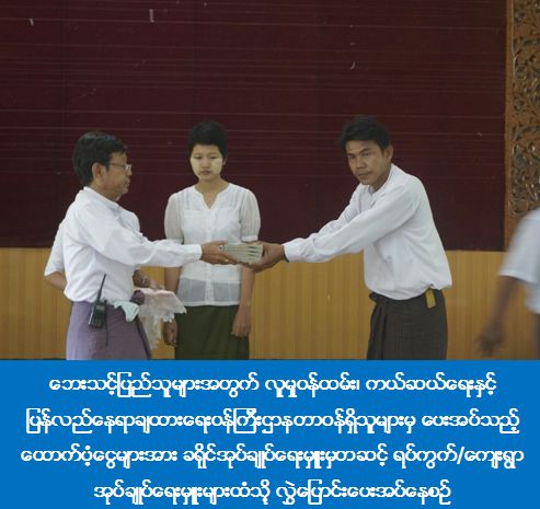 ဧရာဝတီမြစ်ရေမြင့်တက်မှုကြောင့် ပခုက္ကူမြို့နယ်၊ ပြောင်းရွှေ့စုရပ် စခန်း (၄၃) ခုတွင်၊ ရပ်ကွက် (၆) ရပ်ကွက် ၊ ကျေးရွာအုပ်စု (၂၅) အုပ်စု၊ ကျေးရွာ (၈၈) ရွာတို့မှ အိမ်ခြေ (၉၅၂၄) လုံး၊ အိမ်ထောင်စု (၁၀၆၆၇) စုမှ လူးဦးရေစုစုပေါင်း (၄၈၄၇၆) ဦးတို့အတွက် ဆန်ရိက္ခာ (၂) ရက်စာ ထောက်ပံ့ငွေကျပ် (၂၉,၀၈၅,၆၀၀) အား လူမှုဝန်ထမ်း၊ ကယ်ဆယ်ရေးနှင့်ပြန်လည်နေရာချထားရေးဝန်ကြီးဌာန၊ ကယ်ဆယ်ရေးနှင့်ပြန်လည်နေရာချထားရေးဦးစီးဌာနမှ ဒုတိယညွှန်ကြားရေးမှူးချုပ်နှင့့်အဖွဲ့ဝင်များသည် ပခုက္ကူခရိုင်အုပ်ချုပ်ရေးမှူး ဦးကိုကိုလွင်၊ ခရိုင်ရဲတပ်ဖွဲ့မှူး ဒုတိယရဲမှူးကြီး လှဝင်း၊ မီးသတ်ဦးစီးဌာန ဦးကျော်နိုင် လက်ထောက်ညွှန်ကြားရေးမှူးတို့နှင့်အတူ ပခုက္ကူမြို့ပေါ်ရှိ အမှတ် (၁၅) ရပ်ကွက်တွင်ဖွင့်လှစ်ထားသော ရွှေသိမ်တော်ဓမ္မရိပ်သာကယ်ဆယ်ရေးစခန်းတွင် ဆန်ရိက္ခာထောက်ပံငွေများ ပေးအပ်ခဲ့ပြီး ကယ်ဆယ်ရေးစခန်းအတွင်းရှိ ပြည်သူများအားတွေ့ဆုံ၍ ရင်းရင်းနှီးနှီး အားပေးစကား ပြောကြားခဲ့ပါသည်။ ဆက်လက်၍ အဖွဲ့ဝင်များနှင့်အတူ မယ်ဇလီပင်ကုန်းကျေးရွာအုပ်စု၊ မယ်ဇလီပင်ကုန်းကျေးရွာ၊ ငကျော်ကျေးရွာ၊ သံပရာပင်ကုန်းကျေးရွာများရှိ ဧရာဝတီမြစ်ရေဝင်ရောက်ပြီး နေအိမ်အောက်ထပ်များသို့ရေနစ်မြုပ်သော အိမ်များသို့သွားရောက်ကြည့်ရှုပြီး အဆိုပါကျေးရွာများတွင် ရေလွတ်ရာသို့ပြောင်းရွှေ့ထားသော ဘုန်းတော်ကြီးကျောင်းများရှိ ပြည်သူများအားလည်းကောင်း၊ နေအိမ်များတွင် မပြောင်းရွှေ့ဘဲကျန်ရှိနေသော သက်ကြီးရွယ်အိုများနှင့် ကျေးရွာသူ/သားများ၏နေအိမ်များထံသို့ လည်းကောင်း သွားရောက်၍ အရေးပေါ်ဆန်ရိက္ခာတို့ကို (၅-၈-၂၀၁၆) နေ့တွင် အိမ်တိုင်ရာရောက် စနစ်တကျ ထောက်ပံ့ပေးအပ်ခဲ့ပါသည်။ အဆိုပါကယ်ဆယ်ရေးစခန်းများတွင် ကျန်မာရေးစောင့်ရှောက်မှု ပေးနေမှုများကိုလည်း ကြည့်ရှုအားပေးစကားပြောကြားပေးခဲ့ကြောင်း သိရှိရပါသည်။