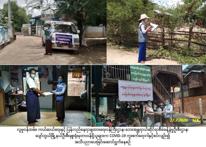 လူမှုဝန်ထမ်း၊ ကယ်ဆယ်ရေးနှင့် ပြန်လည်နေရာချထားရေးဝန်ကြီးဌာန၊ ဘေးအန္တရာယ်ဆိုင်ရာစီမံခန့်ခွဲမှုဦးစီး ဌာန၊ ပျော်ဘွယ်မြို့နယ်ဦးစီးမှူးရုံးမှတာဝန်ရှိသူများသည် (၂၇-၇-၂၀၂၀)ရက်နေ့၊ (၀၉:၀၀) နာရီအချိန်မှ (၂၀:၀၀) နာရီအချိန်အထိ ပျော်ဘွယ်မြို့နယ်အတွင်းရှိ ကျေးရွာအုပ်စု(၆)အုပ်စု၊ ကျေးရွာပေါင်း(၂၆)ရွာတို့၌ COVID-19 ကူးစက်ရောဂါနှင့်စပ်လျဉ်း၍ ဆောင်ရန်/ရှောင်ရန်အချက်များ၊ မိုးရာသီတွင်ဖြစ်ပွားလေ့ရှိသည့် လေပြင်းဘေး၊ ရေဘေး၊ မိုးကြိုးဘေးနှင့်စပ်လျဉ်း၍ ဆောင်ရန်/ရှောင်ရန်အချက်များကို Handspeaker ဖြင့် အသိပညာပေးနှိုးဆော်ခဲ့ပါကြောင်း သတင်းရရှိပါသည်။
