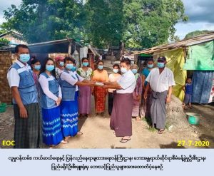 လူမှုဝန်ထမ်း၊ ကယ်ဆယ်ရေးနှင့် ပြန်လည်နေရာချထားရေးဝန်ကြီးဌာန၊ ဘေးအန္တရာယ်ဆိုင်ရာ စီမံခန့်ခွဲမှုဦးစီးဌာန၊ ပြည်ခရိုင်ဦးစီးမှူးရုံးမှ တာဝန်ရှိသူများသည် ရွှေတောင်မြို့၊ ယွန်းတန်း ရပ်ကွက်နှင့် သရက်တောရပ်ကွက်တို့၌ (၂၄-၇-၂၀၂၀) ရက်နေ့နှင့် (၂၆-၇-၂၀၂၀)ရက်နေ့တို့တွင် ဧရာဝတီမြစ်ရေမြင့်တက်မှုကြောင့် ရေဝင်ရောက်ခဲ့သော ပြောင်းရွှေ့နေအိမ် (၂၇)လုံး၊ အိမ်ထောင်စု (၂၇)စုမှ လူဦးရေ (၉၆) ဦးတို့အတွတ် ဆန်ရိက္ခာဖိုးထောက်ပံ့ငွေ စုစုပေါင်း (၂၀၁,၆၀၀/-)ကျပ်အား (၂၇-၇-၂၀၂၀)ရက်နေ့၊ (၁၂:၀၀)နာရီအချိန်တွင် ဘေးသင့်ပြည်သူများထံ လက်ဝယ်အရောက် သွားရောက်ထောက်ပံ့ခဲ့ကြောင်း သတင်းရရှိပါသည်။