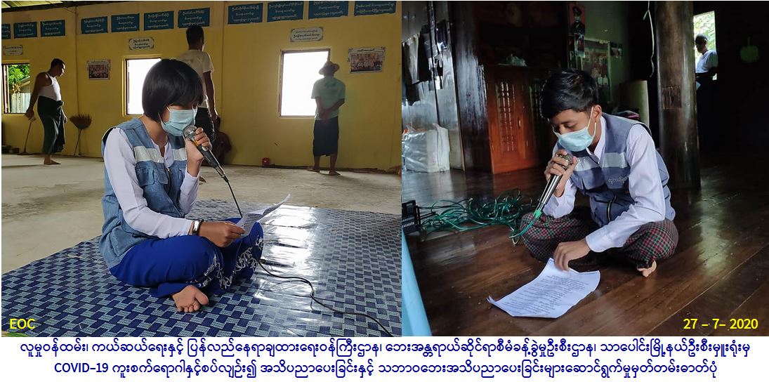 လူမှုဝန်ထမ်း၊ ကယ်ဆယ်ရေးနှင့်ပြန်လည်နေရာချထားရေးဝန်ကြီးဌာန၊ ဘေးအန္တရာယ်ဆိုင်ရာစီမံခန့်ခွဲမှုဦးစီးဌာန၊ သာပေါင်း မြို့နယ် ဦးစီးမှူးရုံးမှ တာဝန်ရှိသူများသည် (၂၇-၇-၂၀၂၀) ရက်နေ့၊ (၁၁:၄၅) နာရီအချိန်တွင် သာပေါင်းမြို့နယ်၊ ဆင်လမ်းကျေးရွာအုပ်စု၊ ဆင်လမ်းကျေးရွာ၊ ဘုရားကုန်းကျေးရွာ၊ ဂျုံးဂျုံးကျကျေးရွာတို့တွင် Covid-19 ဒုတိယလှိုင်းကူးစက်မှု မဖြစ်ပွားစေရန်နှင့် သဘာဝဘေးနှင့်ပက်သက်သည့် ဆောင်ရန်/ ရှောင်ရန်များကို ကျေးရွာ/ရပ်ကွက် နေ မိဘပြည်သူတို့အား အသိပညာပေးဟောပြော ဆောင်ရွက်ခဲ့ပါကြောင်း သတင်းရရှိပါသည်။