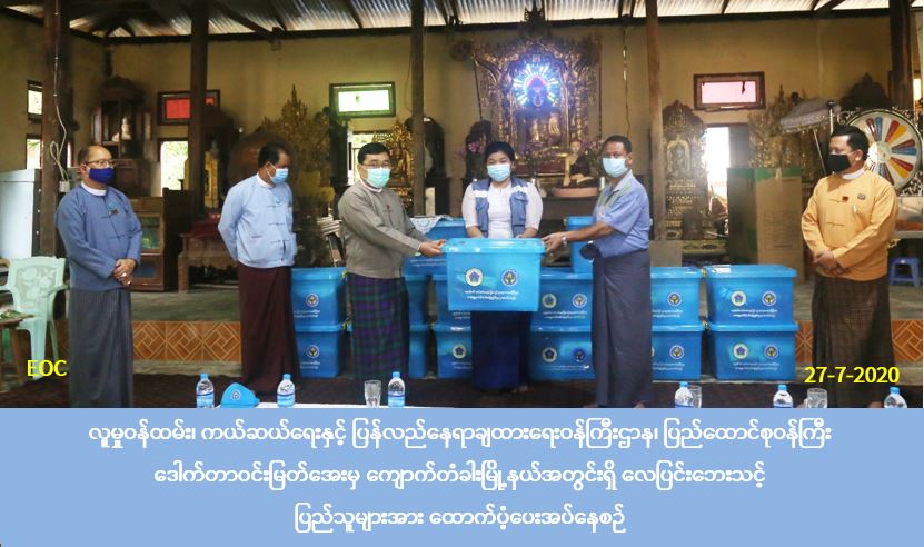 ထို့နောက် အိမ်ခြေ (၆၁) လုံးအတွက် အိမ်ဆောက်ပစ္စည်းဖိုးများ၊ လူဦးရေ ( ၂၅၈) ဦးအတွက် ဆန်ရိက္ခာဖိုးငွေ စုစုပေါင်းထောက်ပံ့ငွေကျပ် (၃,၃၀၇,၈၀၀) နှင့် ပစ္စည်း(၁၆)မျိုးပါ ကယ်ဆယ်ရေးပုံး များကို ဘေးသင့်ပြည်သူများထံသို့ ပေးအပ်ထောက်ပံ့ခဲ့ကြောင်း သတင်းရရှိပါသည်။