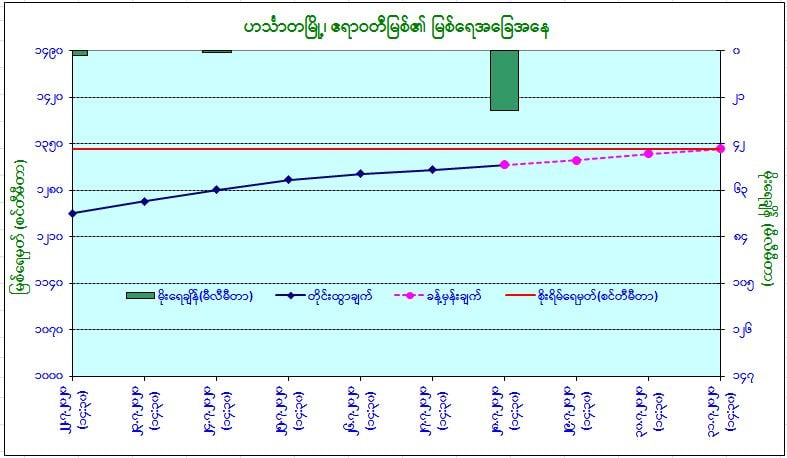 ယနေ့မြန်မာစံတော်ချိန် (၁၄:၃၀)နာရီအချိန် တိုင်းထွာချက်အရ ဧရာဝတီမြစ်ရေသည် ဟင်္သာတမြို့တွင် (၁)ပေခန့် ယင်းမြို့၏ စိုးရိမ်ရေမှတ် အောက်တွင် ရောက်ရှိနေပါသည်။ အဆိုပါမြစ်ရေသည် နောက်(၃)ရက်အတွင်း ယင်းမြို့၏ စိုးရိမ်ရေမှတ်သို့ ရောက်ရှိနိုင်ပါသည်။