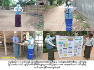 လူမှုဝန်ထမ်း၊ ကယ်ဆယ်ရေးနှင့် ပြန်လည်နေရာချထားရေးဝန်ကြီးဌာန၊ ဘေးအန္တရာယ်ဆိုင်ရာစီမံခန့်ခွဲမှုဦးစီး ဌာန၊ ပြည်ထောင်စုနယ်မြေ၊ နေပြည်တော်တိုင်းဦးစီးမှူးရုံးမှတာဝန်ရှိသူများသည် (၂၈-၇-၂၀၂၀)ရက်နေ့၊ (၁၀:၀၀) နာရီအချိန်မှ (၁၅:၃၀) နာရီအချိန်အထိ လယ်ဝေးမြို့နယ်၊ အင်ပင်ကျေးရွာအုပ်စု၊ အင်ပင်ကျေးရွာ၊ တောင်စဉ်အေးကျေးရွာ၊ ရေနီလေးကျေးရွာ၊ ဘို့ကိုးလုံးကျေးရွာ၊ ညောင်ပင်အိုင်ကျေးရွာ၊ အင်ပင်တဲစုကျေးရွာ၊ ရေကျော်ကျေးရွာ၊ ဦးနီကျေးရွာတို့၌ COVID-19 ကူးစက်ရောဂါနှင့်စပ်လျဉ်း၍ ဆောင်ရန်/ရှောင်ရန်အချက်များ၊ မိုးရာသီတွင်ဖြစ်ပွားလေ့ရှိသည့် မိုးကြိုးဘေး၊ ရေဘေးတို့နှင့်စပ်လျဉ်း၍ ဆောင်ရန်/ရှောင်ရန်အချက်များကို အသိပညာပေးနှိုးဆော်ခဲ့ပြီး လက်ကမ်းစာစောင်များဖြန့်ဝေခဲ့ပါကြောင်း သတင်းရရှိပါသည်။