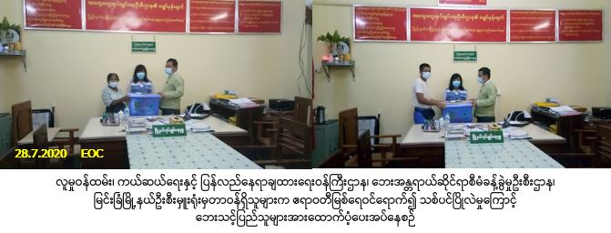 လူမှုဝန်ထမ်း၊ ကယ်ဆယ်ရေးနှင့် ပြန်လည်နေရာချထားရေးဝန်ကြီးဌာန၊ ဘေးအန္တရာယ်ဆိုင်ရာစီမံခန့်ခွဲမှုဦးစီး ဌာန၊ မြင်းခြံမြို့နယ်ဦးစီးမှူးရုံးမှတာဝန်ရှိသူများသည် မန္တလေးတိုင်းဒေသကြီး၊ မြင်းခြံခရိုင်၊ မြင်းခြံမြို့နယ်၊အမှတ်(၁၂)ရပ်ကွက်၊ အောက်ဆန်တန်းလမ်း၌ (၂၆-၇-၂၀၂၀)ရက်နေ့၊ (၁၅:၁၅) နာရီအချိန်တွင် ဖြစ်ပွားခဲ့သော ဧရာဝတီမြစ်ရေဝင်ရောက်၍ သစ်ပင်ပြိုလဲမှုကြောင့် ပြိုကျပျက်စီး အိမ်ခြေ(၁)လုံး၊ တစ်စိတ်တစ်ပိုင်းပျက်စီး အိမ်ခြေ(၁)လုံး၊ အိမ်ထောင်စု(၂)စုမှ လူဦးရေ (၁၃)ဦးဘေးသင့်ခဲ့ရာ အဆိုပါဘေးသင့်ပြည်သူများအတွက် အိမ်ဆောက်ပစ္စည်းဖိုးထောက်ပံ့ငွေ (၂၀၀,၀၀၀/-)ကျပ်၊ ဆန်ရိက္ခာ (၇)ရက်စာဖိုးထောက်ပံ့ငွေ (၂၇,၃၀၀/-)ကျပ်၊ ကယ်ဆယ်ရေးပစ္စည်း (၁၇)မျိုးအိမ်ထောင်စု(၁)စုစာနှင့် ကယ်ဆယ်ရေးပစ္စည်း(၁၁)မျိုး အိမ်ထောင်စု(၁)စုစာတို့ကို (၂၈-၇-၂၀၂၀)ရက်နေ့တွင် မြင်းခြံမြို့နယ်အထွေထွေအုပ်ချုပ်ရေးဦးစီးဌာနမှ မြို့နယ်အုပ်ချုပ်ရေးမှူးနှင့်အတူ ဘေးသင့်ပြည်သူများထံသို့ လက်ဝယ်အရောက် ထောက်ပံ့ပေးအပ်ခဲ့ပါကြောင်း သတင်းရရှိပါသည်။