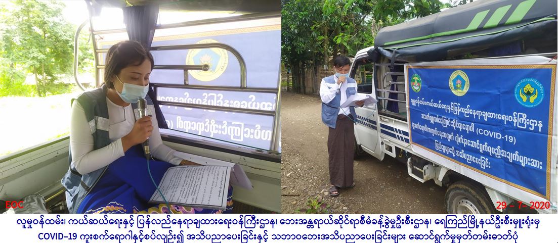 လူမှုဝန်ထမ်း၊ ကယ်ဆယ်ရေးနှင့်ပြန်လည်နေရာချထားရေးဝန်ကြီးဌာန၊ ဘေးအန္တရာယ်ဆိုင်ရာစီမံခန့်ခွဲမှုဦးစီးဌာန၊ ရေကြည် မြို့နယ်ဦးစီးမှူးရုံးမှ တာဝန်ရှိသူများသည် (၂၉-၇-၂၀၂၀)ရက်နေ့၊ (၀၈:၃၀)နာရီအချိန်မှစ၍ ရေကြည်မြို့နယ်၊ သခွတ်ကုန်းကျေးရွာ အုပ်စု၊ ရေသိုးကြီးကျေးရွာ၊ လက်ပံကုန်းကျေးရွာ၊ ရေသိုးလေးကျေးရွာ၊ ကြာအင်း(အရှေ့)နှင့် ကြာအင်း(အနောက်)ကျေးရွာတို့တွင် Covid-19 ဒုတိယလှိုင်းကူးစက်မှု မဖြစ်ပွားရေရန်နှင့် သဘာဝဘေးနှင့် ပက်သက်သည့် ဆောင်ရန်/ရှောင်ရန်များကို ကျေးရွာ/ ရပ်ကွက်နေ မိဘပြည်သူတို့အား အသိပညာပေးဟောပြော ဆောင်ရွက်ခဲ့ပါကြောင်း သတင်းရရှိပါသည်။