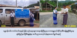 လူမှုဝန်ထမ်း၊ ကယ်ဆယ်ရေးနှင့် ပြန်လည်နေရာချထားရေးဝန်ကြီးဌာန၊ ဘေးအန္တရာယ်ဆိုင်ရာ စီမံခန့်ခွဲမှုဦးစီးဌာန၊ ရှမ်းပြည်နယ်ဦးစီးမှူးရုံးမှ တာဝန်ရှိသူများသည် (၂၉-၇-၂၀၂၀) ရက်နေ့တွင် ရှမ်းပြည်နယ်အစိုးရအဖွဲ့၏ ကြီးကြပ်မှုဖြင့် တောင်ကြီးမြို့နယ်၊ တောင်နီကျေးရွာနှင့် လူရိုး တောင်ကျေးရွာ၊ ညောင်ရွှေမြို့နယ်၊ လွယ်ငြိမ့်ကျေးရွာတို့၌ Covid-19 ကူးစက်ရောဂါ ကြိုတင် ကာကွယ်ရေး အသိပညာပေးခြင်းနှင့် သဘာဝဘေးဆိုင်ရာ အသိပညာပေးခြင်းများအား Hand Speaker များဖြင့် လိုက်လံဟောပြောခြင်း ၊ Mask နှင့် အသိပညာပေးလက်ကမ်းစာစောင်များ ပေးဝေခြင်းများ ဆောင်ရွက်ခဲ့ပါကြောင်း သတင်းရရှိပါသည်။