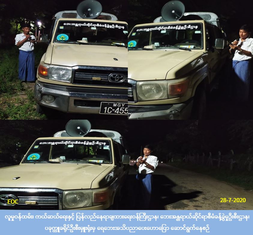 လူမှုဝန်ထမ်း၊ ကယ်ဆယ်ရေးနှင့် ပြန်လည်နေရာချထားရေးဝန်ကြီးဌာန၊ ဘေးအန္တရာယ်ဆိုင်ရာစီမံခန့်ခွဲမှုဉီးစီးဌာန၊ ပခုက္ကူခရိုင်ဦးစီးမှူးရုံးမှ တာဝန်ရှိသူများသည် (၂၈-၇-၂၀၂၀) ရက်နေ့တွင် (၁၉:၀၀) အချိန်မှ (၂၂:၀၀) အချိန်ထိပခုက္ကူမြို့နယ်၊ ပခုက္ကူမြို့ပေါ်ရှိ (၁/ ၂/၁၀) ရက်ကွက်များသို့ ရေဘေးကြိုတင်ကာကွယ်ရေးလုပ်ငန်းများနှင့် ပန်ကြားချက်များအား လှည့်လည်အသိပေးခြင်းတို့ကို ဆောင်ရွက်ခဲ့ပါကြောင်း သတင်းရရှိပါသည်။