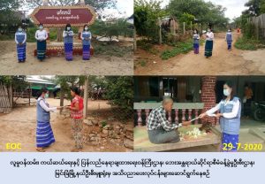 လူမှုဝန်ထမ်း၊ ကယ်ဆယ်ရေးနှင့် ပြန်လည်နေရာချထားရေးဝန်ကြီးဌာန၊ ဘေးအန္တရာယ်ဆိုင်ရာ စီမံခန့်ခွဲမှုဦးစီးဌာန၊ မြင်းခြံမြို့နယ်ဦးစီးမှူးရုံးမှ တာဝန်ရှိသူများသည် ခရိုင်ပြန်ကြားရေးနှင့် ပြည်သူ့ဆက်ဆံရေးဦးစီးဌာနမှ တာဝန်ရှိသူများနှင့်ပူးပေါင်း၍ (၂၉-၇-၂၀၂၀) ရက်နေ့ ၊ (၀၇:၃၀) နာရီအချိန်တွင် မြင်းခြံမြို့နယ်အတွင်းရှိ အမှတ်(၁၆၊၁၉)ရပ်ကွက်၊ ကွမ်းစိုက်ကျေးရွာ၊ မကျီး သမြားကျေးရွာ၊ ချေဆေးကျေးရွာ၊ ကူရွာကျေးရွာ၊ တောရိုးကျေးရွာ၊ ဂွေးတောက်ပင်ကျေးရွာ၊ ဆားခါးကျေးရွာ၊ ဂွေးပင်ရိုးကျေးရွာ၊ ကျောက်တန်းကျေးရွာ၊ တောင်ရှေ့ကျေးရွာများသို့ လှည့် လည်၍ COVID -19 ကူးစက်ရောဂါကြိုတင်ကာကွယ်ရေးနှင့် မိုးရာသီတွင် ဖြစ်ပွားလေ့ရှိသည့် သဘာဝဘေးအန္တရာယ်များ ကြိုတင်ပြင်ဆင်ရေးနှင့်ပတ်သက်၍ ပြည်သူလူထုသို့ အသိပေးနှိုးဆော်ခြင်းများနှင့် လက်ကမ်းစာစောင်ပေးအပ်ခြင်းများ ဆောင်ရွက်ခဲ့ကြောင်း သတင်းရရှိပါ သည်။