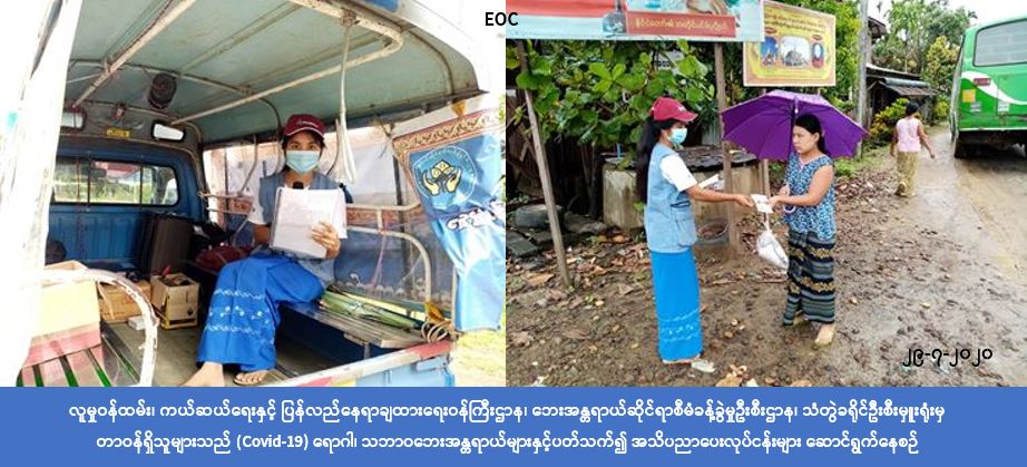 လူမှုဝန်ထမ်း၊ ကယ်ဆယ်ရေးနှင့် ပြန်လည်နေရာချထားရေးဝန်ကြီးဌာန၊ ဘေးအန္တရာယ်ဆိုင်ရာစီမံခန့်ခွဲမှုဦးစီး ဌာန၊ သံတွဲခရိုင်ဦးစီးမှူးရုံးမှတာဝန်ရှိသူများသည်(၂၉-၇-၂၀၂၀) ရက်နေ့(၀၉:၀၀)အချိန်မှ(၁၆:၀၀)အချိန်ထိ သံတွဲ ခရိုင်၊ ဂွမြို့၊ ရွာမရပ်ကွက်၊ ကင်းရုံးရပ်ကွက်၊မြို့မရပ်ကွက်၊ ရဟိုင်ကွင်းကျေးရွာနှင့် ရဟိုင်ကူးတို့ကျေးရွာ တို့တွင် (COVID-19) ရောဂါကူးစက်ပျံ့နှံ့မှုမဖြစ်ပွားစေရေးနှင့် မိုးရာသီကာလအတွင်းဖြစ်ပွားလေ့ရှိသည့် မိုးကြိုးဘေး၊ ရေဘေး၊ လေပြင်းဘေး၊ မုန်တိုင်းဘေးအန္တရာယ်များ ကြိုတင်ပြင်ဆင်ရေးအသိပညာပေးခြင်းနှင့် လက်ကမ်း စာစောင်များ ဖြန့်ဝေပေးခဲ့ကြောင်း သိရှိရပါသည်။