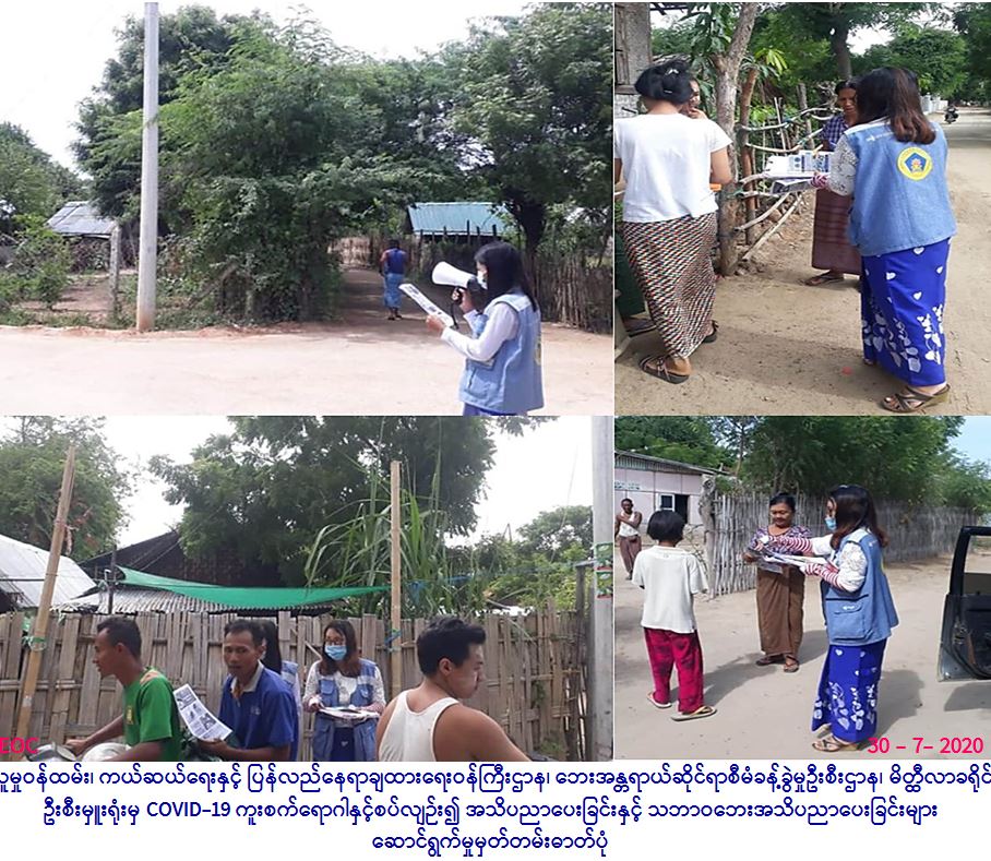 လူမှုဝန်ထမ်း၊ ကယ်ဆယ်ရေးနှင့်ပြန်လည်နေရာချထားရေးဝန်ကြီးဌာန၊ ဘေးအန္တရာယ်ဆိုင်ရာစီမံခန့်ခွဲမှုဦးစီးဌာန၊ မိတ္ထီလာခရိုင်ဦးစီးမှူးရုံးမှ တာဝန်ရှိသူများသည် ဇူလိုင်လ ၃၀ ရက်နေ့တွင် မိတ္ထီလာ မြို့နယ်အတွင်းရှိ ပျဉ်သာအုပ်စု (ကျိတ်ပုလဲ၊ ပျဉ်သာ၊ သဲကုန်း) ကံကြီးအုပ်စု (ကံကြီး၊ ပိတောက်ပင်၊ ကုက္ကိုလ်ပင်၊ အုတ်ဖို၊ ကျောင်းရွာ) ရုံးတောအုပ်စု(ရုံးတောကြီး၊ ရုံးတောလေး)များရှိ ပြည်သူများအား COVID-19 ကူးစက်ရောဂါ ပြန့်ပွားမှုမဖြစ်ပွား စေရန်အတွက် သိရှိလိုက်နာရန်အချက်များနှင့် သဘာဝဘေးအန္တရာယ်နှင့်စပ်လျဉ်း သည့် ဆောင်ရန်၊ ရှောင်ရန်များကို အသိပညာဖြန့်ဝေပေးခဲ့ပါကြောင်း သတင်းရရှိပါသည်။