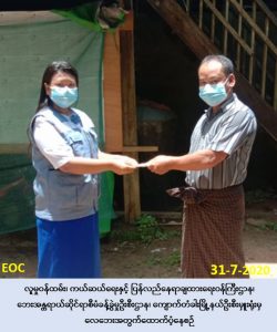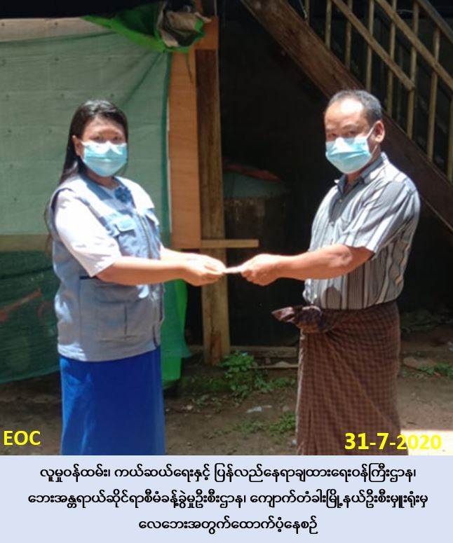 လူမှုဝန်ထမ်း၊ ကယ်ဆယ်ရေးနှင့် ပြန်လည်နေရာချထားရေးဝန်ကြီးဌာန၊ ဘေးအန္တရာယ်ဆိုင်ရာ စီမံခန့်ခွဲမှုဦးစီးဌာန၊ ကျောက်တံခါးမြို့နယ်ဦးစီးမှူးရုံးမှ တာ၀န်ရှိသူများသည် (၂၆-၇-၂၀၂၀) ရက်နေ့၊ (၁၂:၃၀)နာရီအချိန်၌ ပဲခူးခရိုင်၊ ကျောက်တံခါးမြို့နယ်၊ ဂွေးကုန်းကျေးရွာအုပ်စု၊ ခင်တန်းကြီးကျေးရွာတွင် ဖြစ်ပွားခဲ့သော လေဘေးမှ တစ်စိတ်တစ်ပိုင်းပျက်စီး ဘုန်းကြီးကျောင်း (၁) ကျောင်းအတွက် ထောက်ပံ့ငွေ (၁၀၀,၀၀၀/-)ကျပ်အား (၃၁-၇-၂၀၂၀)ရက်နေ့၊ နေ့လည် (၁၂:၀၀)နာရီအချိန်တွင် သက်ဆိုင်ရာကျေးရွာအုပ်ချုပ်ရေးမှူး လက်၀ယ်အရောက် သွားရောက် ထောက်ပံ့ပေးအပ်ခဲ့ပါကြောင်း သတင်းရရှိပါသည်။