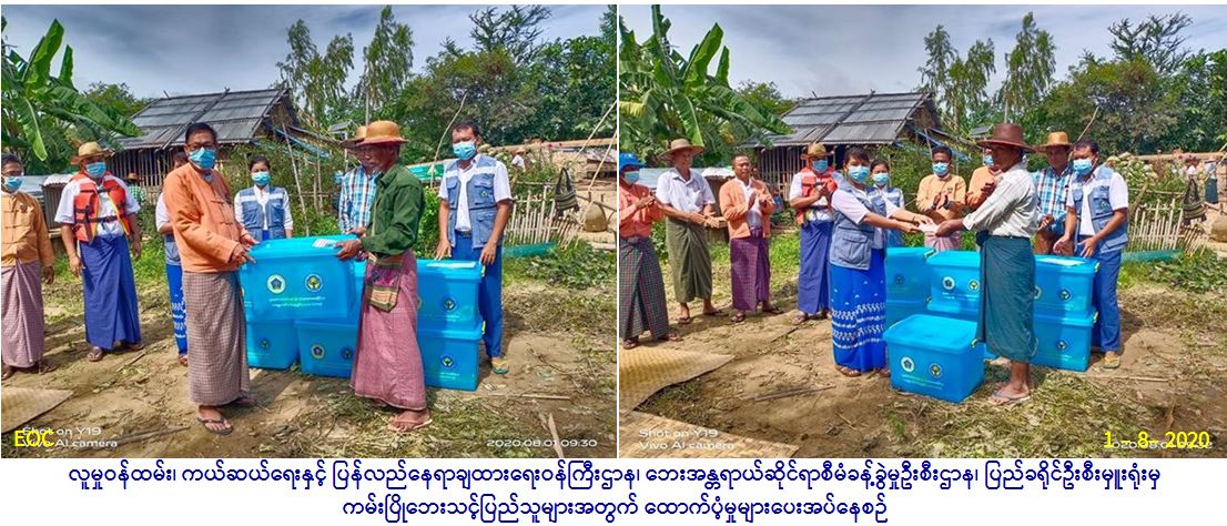လူမှုဝန်ထမ်း၊ ကယ်ဆယ်ရေးနှင့် ပြန်လည်နေရာချထားရေး ဝန်ကြီးဌာန၊ ဘေးအန္တရာယ်ဆိုင်ရာစီမံခန့်ခွဲမှုဦးစီးဌာန၊ ပြည်ခရိုင်၊ ရွှေတောင်မြို့နယ်၊ တရုတ်မှော်အုပ်စု၊ သာစည်ကျေးရွာ ကမ်းပြိုကြိုတင် ရွှေ့ပြောင်းနေအိမ် (၇)လုံးအတွက် အိမ်ဆောက်ပစ္စည်ဖိုး ထောက်ပံ့ငွေ (၇၀၀၀၀၀/-)ကျပ်၊ အိမ်ထောင်စု(၇)စုရှိ လူဦးရေ (၂၆) ဦးအတွက် ဆန်ရိက္ခာဖိုးထောက်ပံ့ငွေ (၅၄၆၀၀/-)ကျပ်၊ စုစုပေါင်းထောက်ပံ့ငွေ (၇၅၄၆၀၀/-)နှင့် ကယ်ဆယ်ရေးပစ္စည်း (၁၀)မျိုး (၇)အိမ်ထောင်စာတို့အား (၁.၈.၂၀၂၀)ရက်နေ့ နံနက် (၁၀:၀၀)နာရီတွင် ရွှေတောင်မြို့နယ်သဘာဝဘေးအဖွဲ့၊ လွှတ်တော်ကိုယ်စားလှယ်များနှင့်အတူ ဘေးသင့်ပြည်သူများထံ လက်ဝယ်အရောက် ကွင်းဆင်းထောက်ပံ့ပေးအပ်ခဲ့ပါကြောင်း သတင်းရရှိပါသည်။